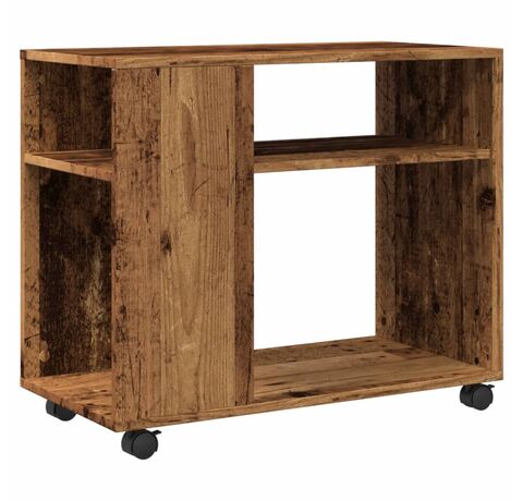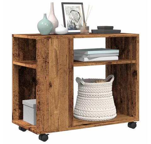 Masă laterală cu roți, negru, 70x35x60 cm, lemn prelucrat