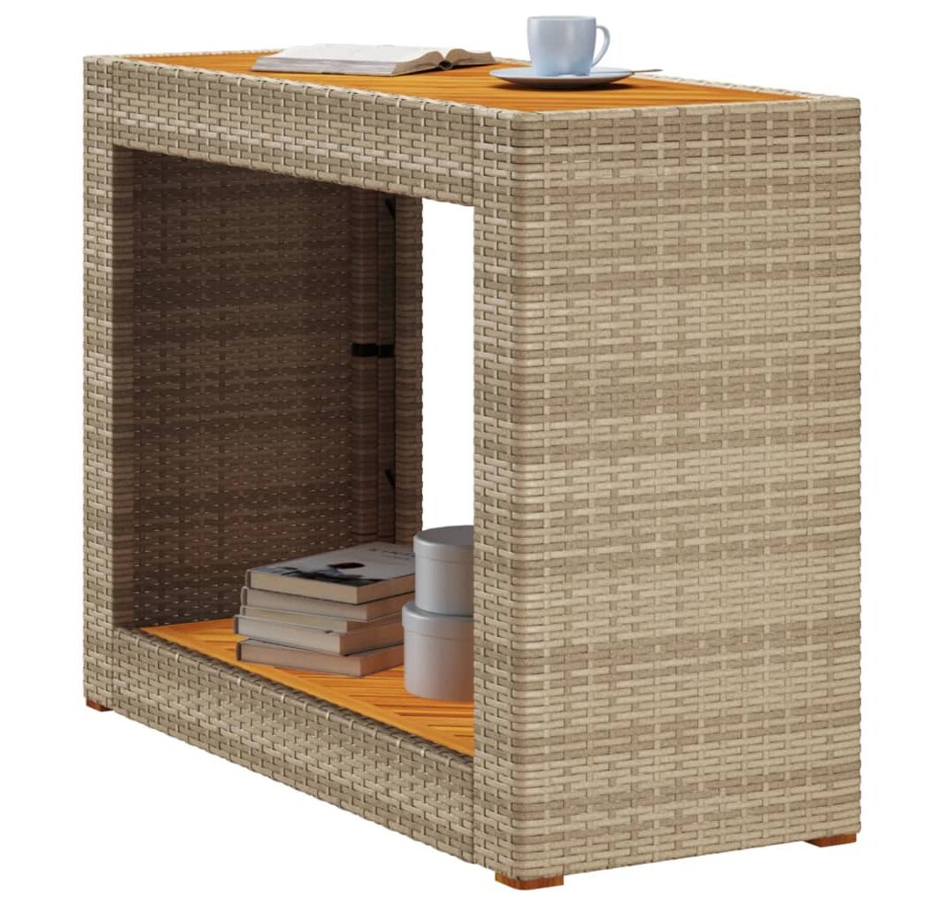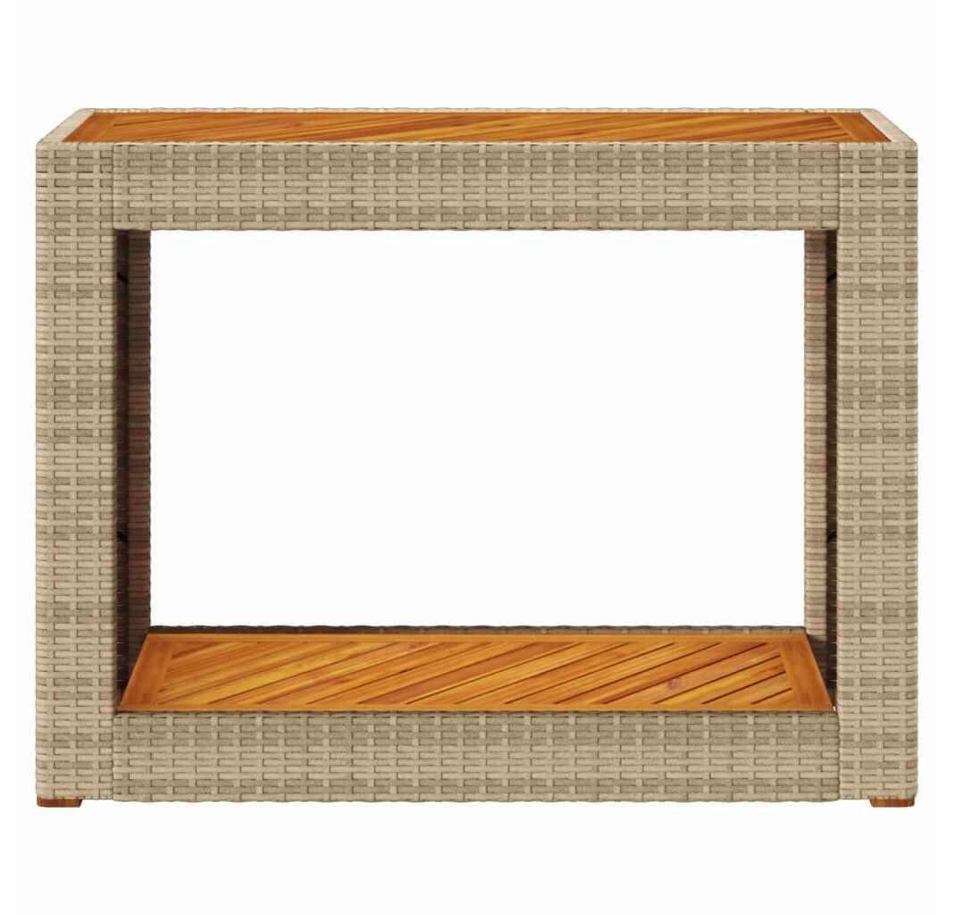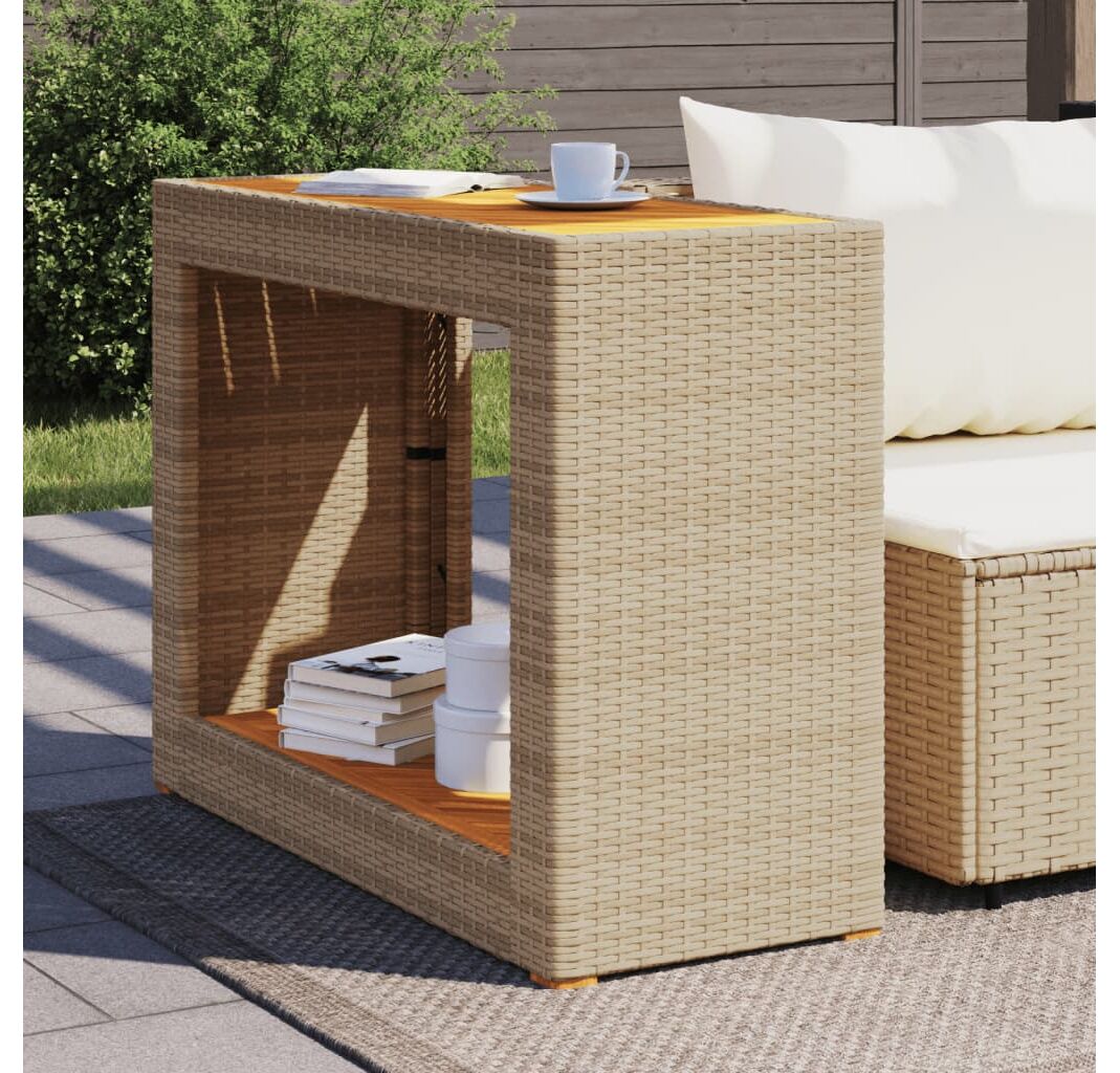 Masă laterală de grădină blat lemn, bej, 100x40x75 cm poliratan