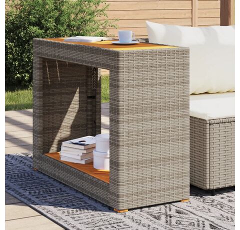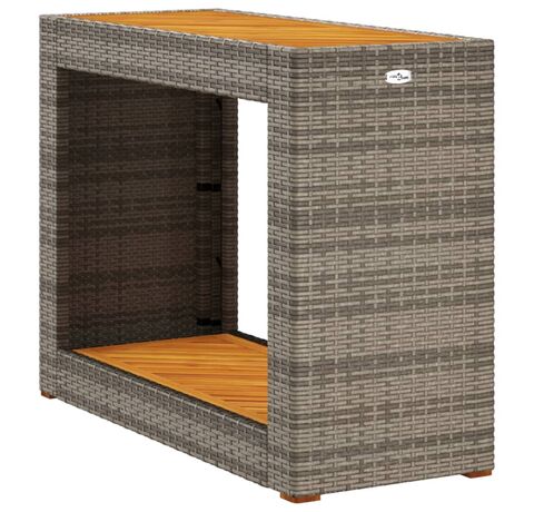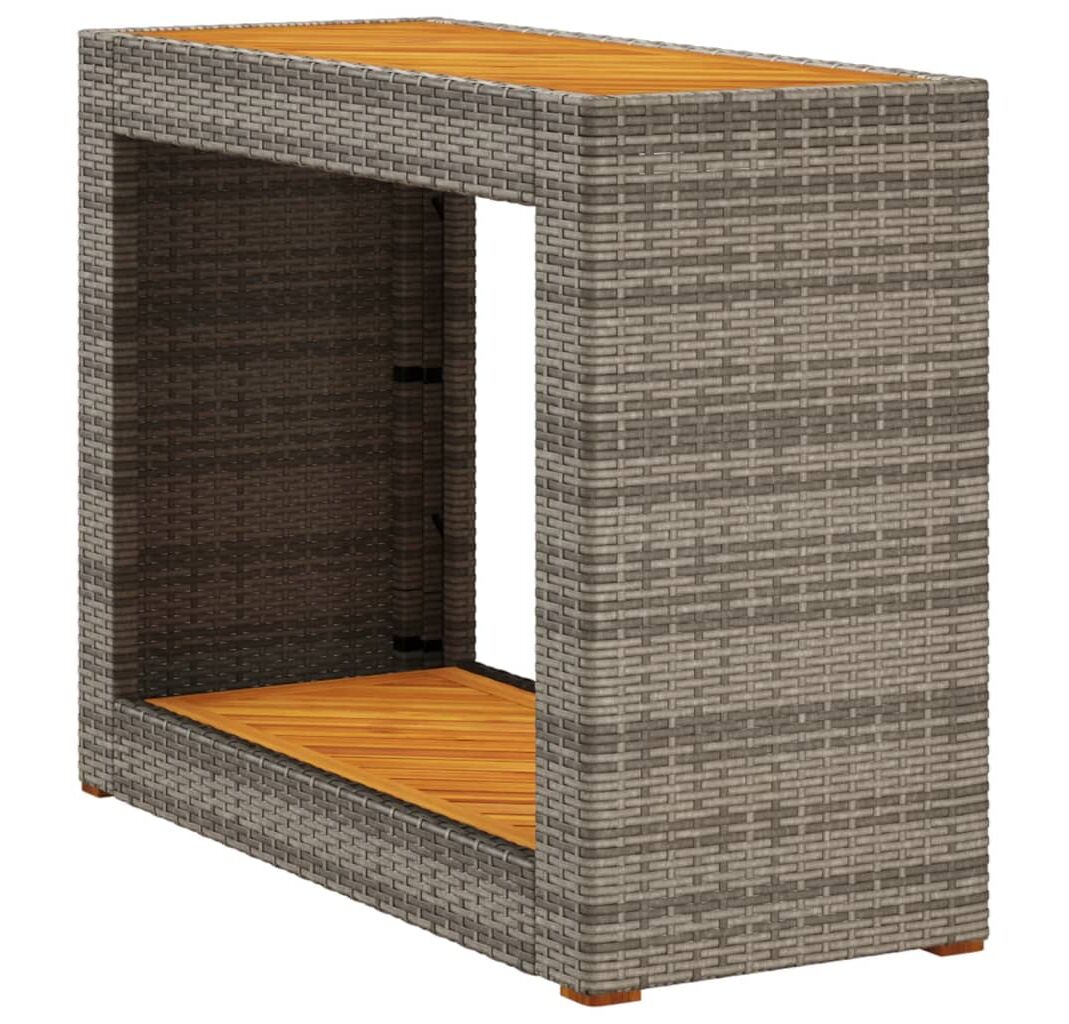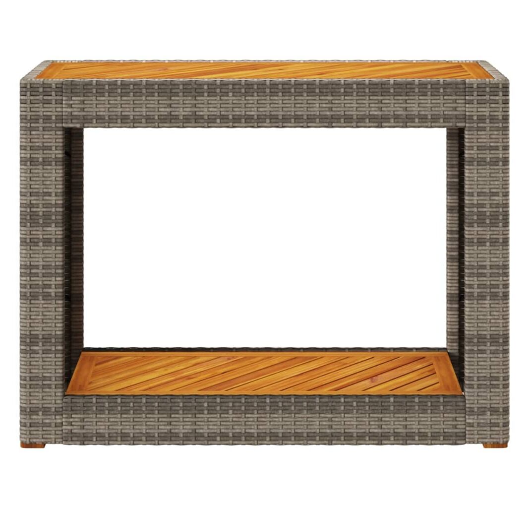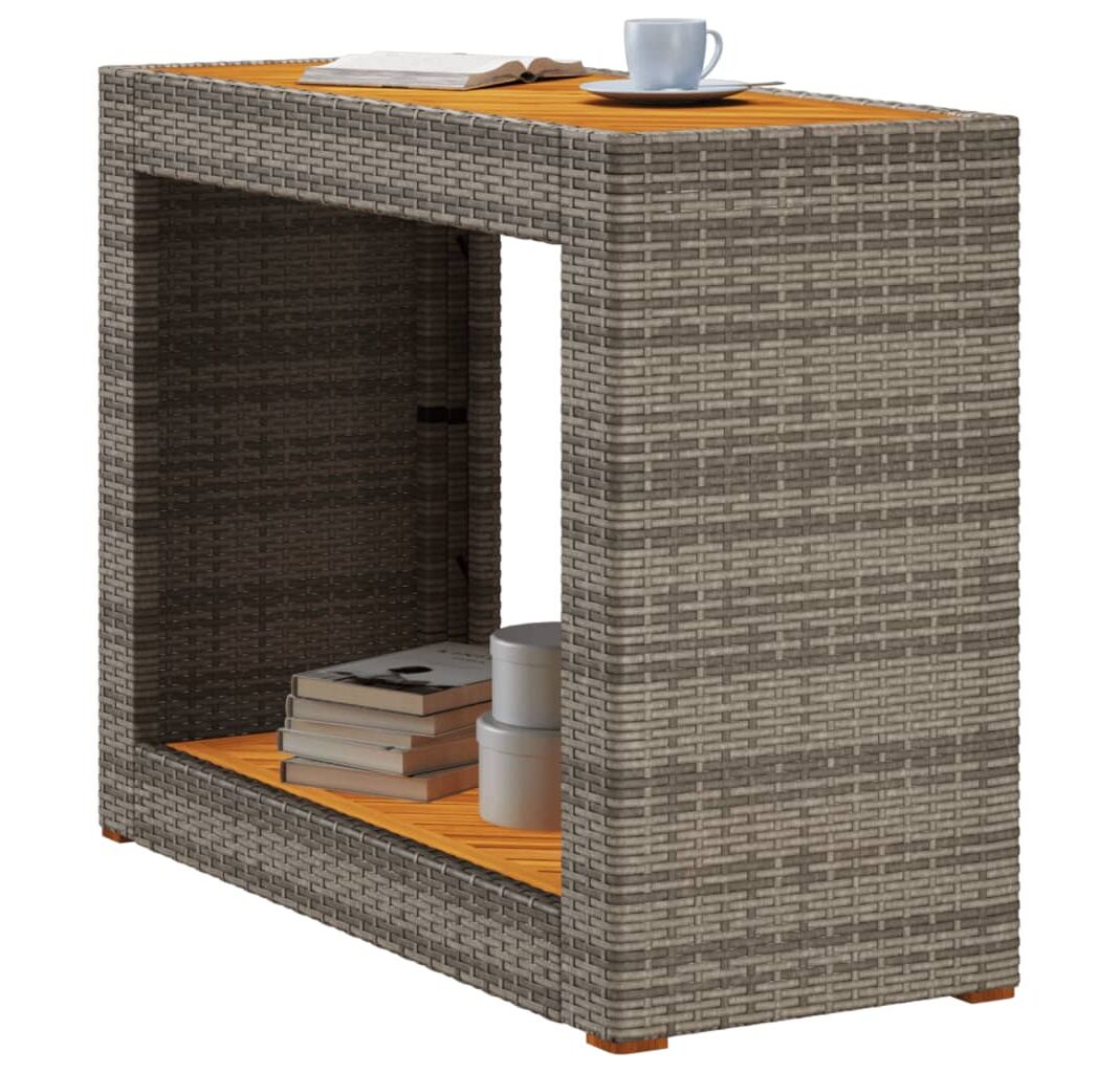 Masă laterală de grădină blat lemn, gri, 100x40x75 cm poliratan