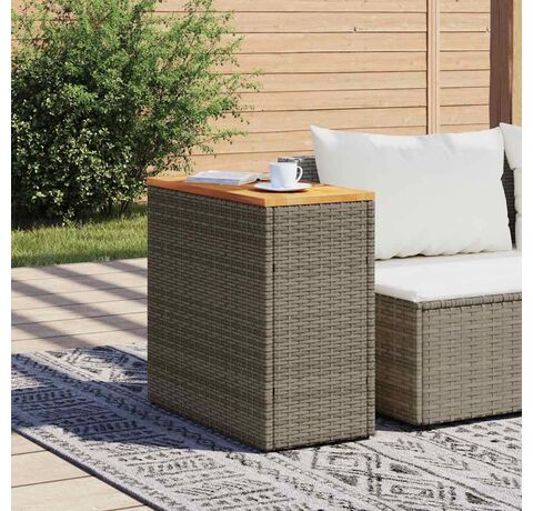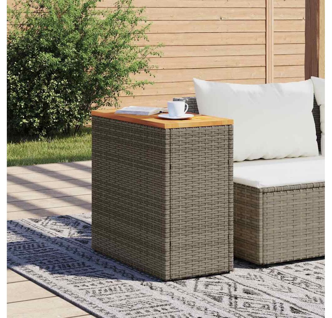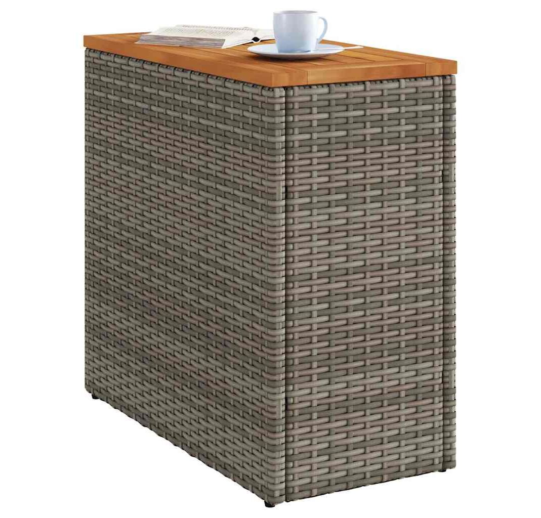 Masă laterală de grădină blat lemn gri 58x27,5x55 cm poliratan