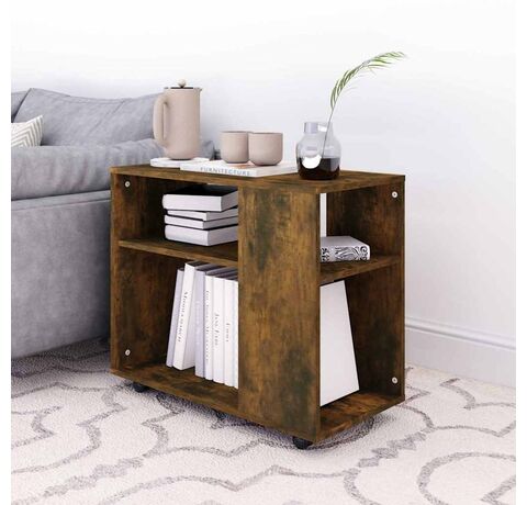 Masa de canapea este realizată din lemn compozit, ceea ce îi oferă un aspect rafinat și îi aduce multă stabilitate și durabilitate. Această masă oferă un spațiu generos pentru păstrarea revistelor, cărților, telecomenzii, precum și a altor articole mici. Rotițele permit deplasarea cu ușurință a mesei.