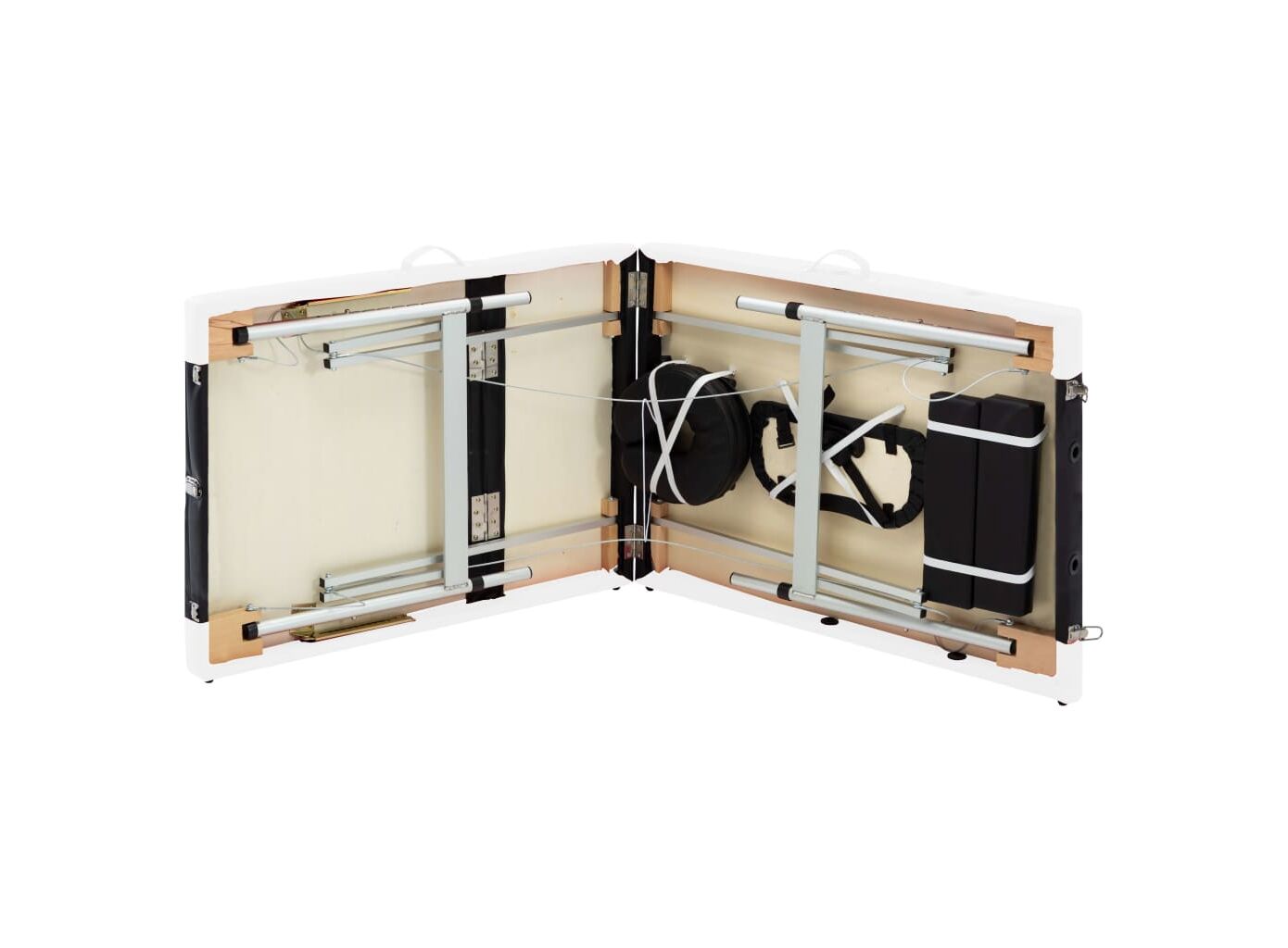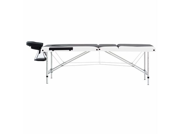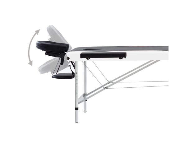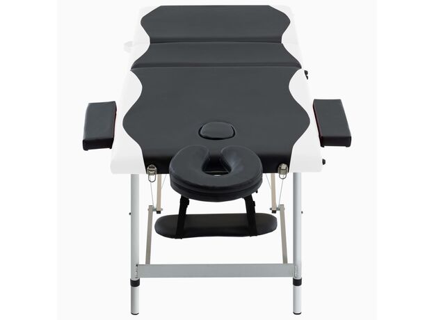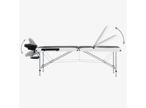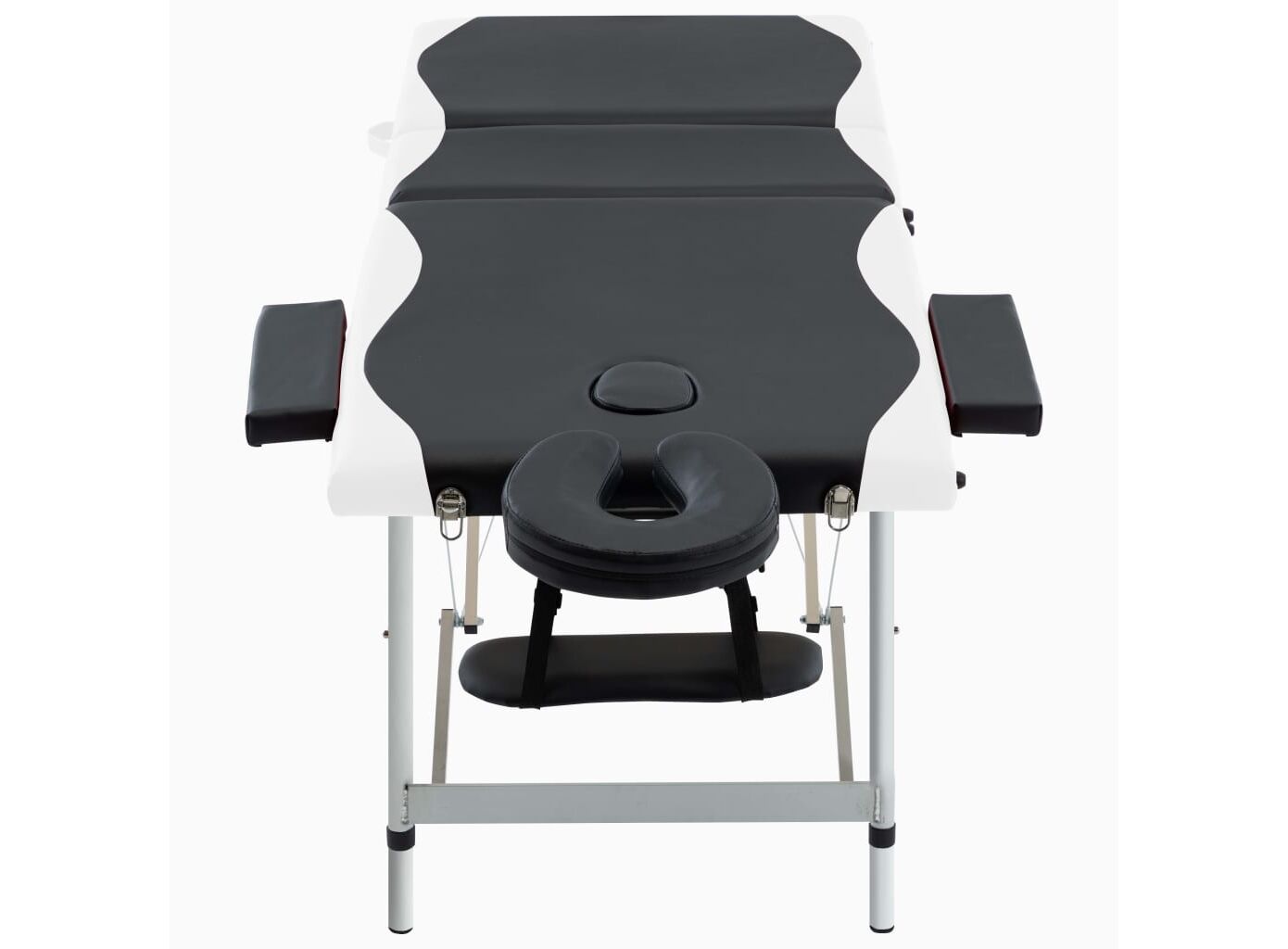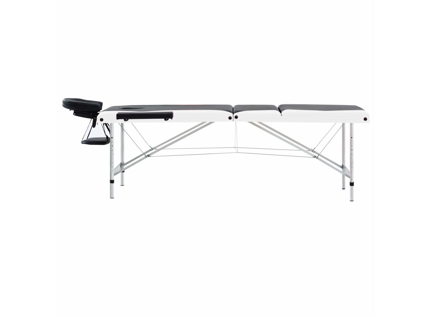 Masă pliabilă de masaj, 3 zone, negru și alb, aluminiu