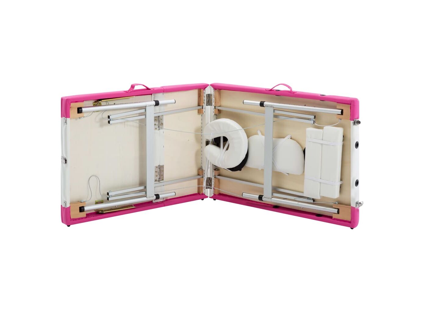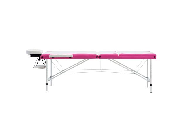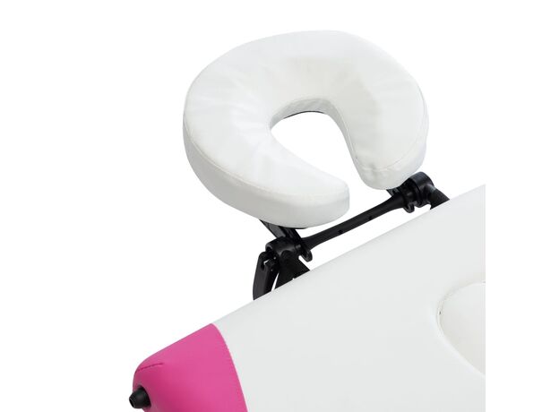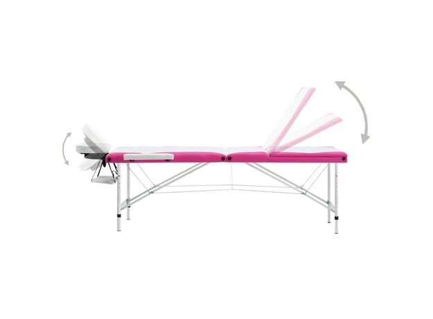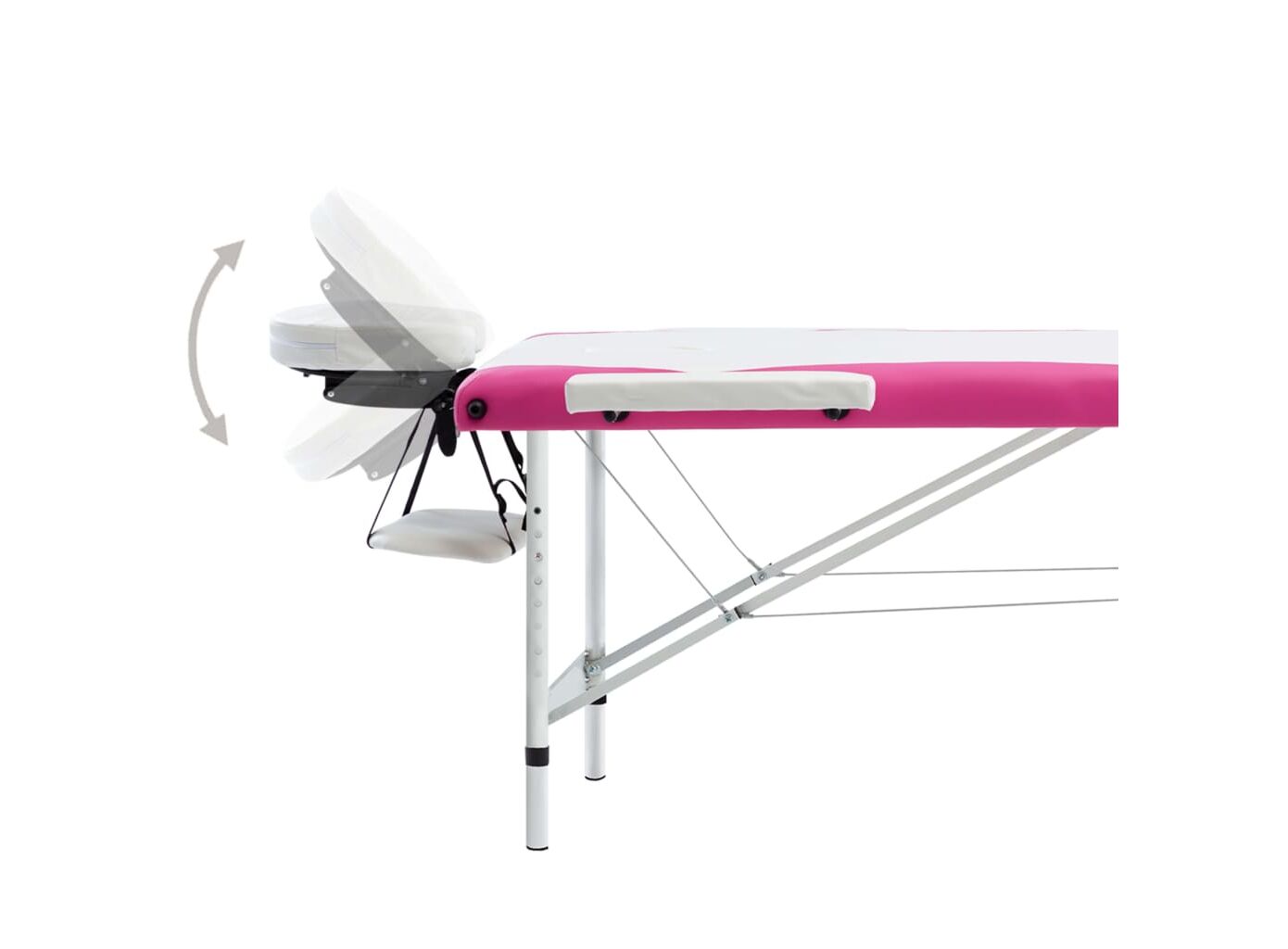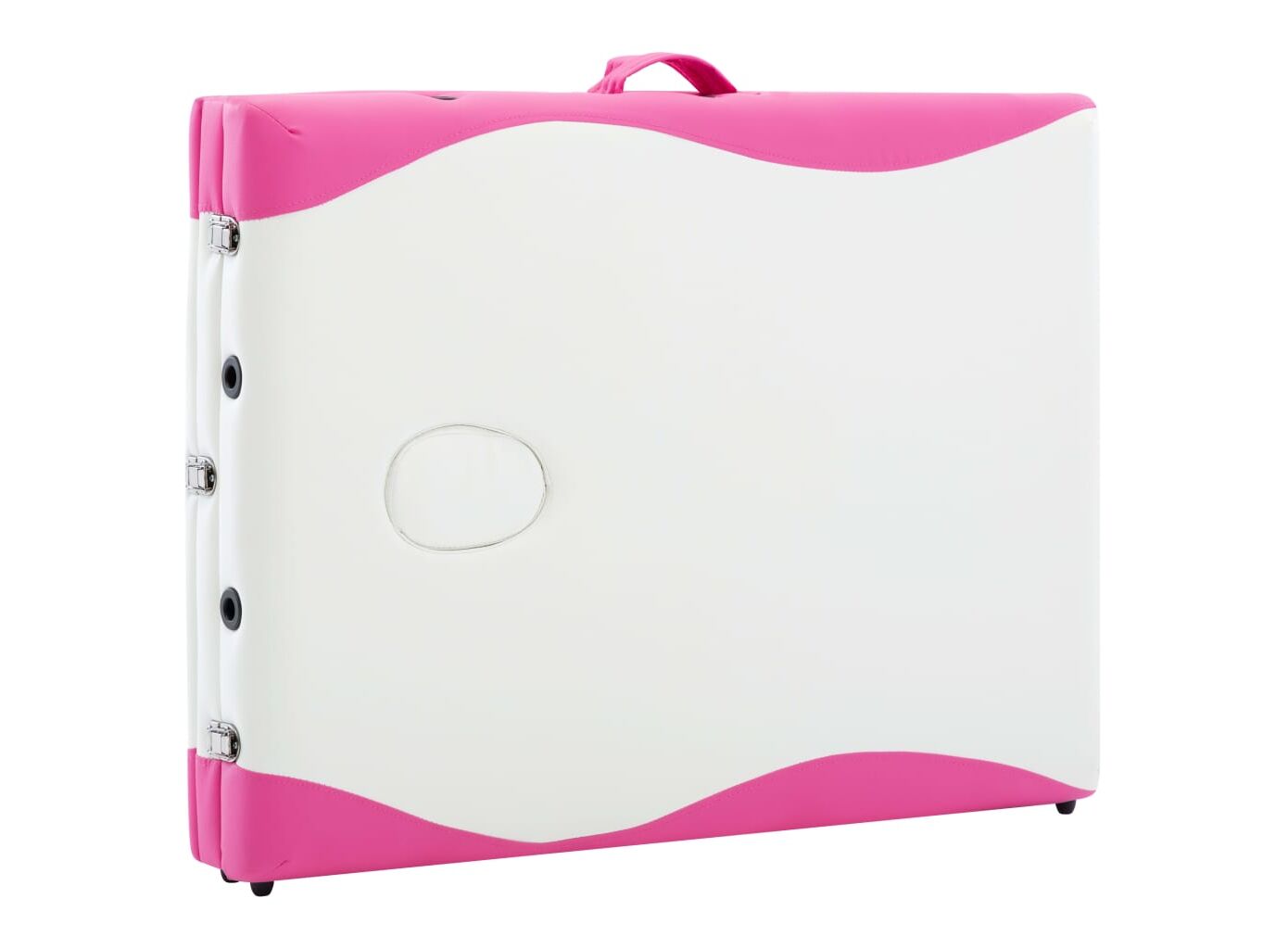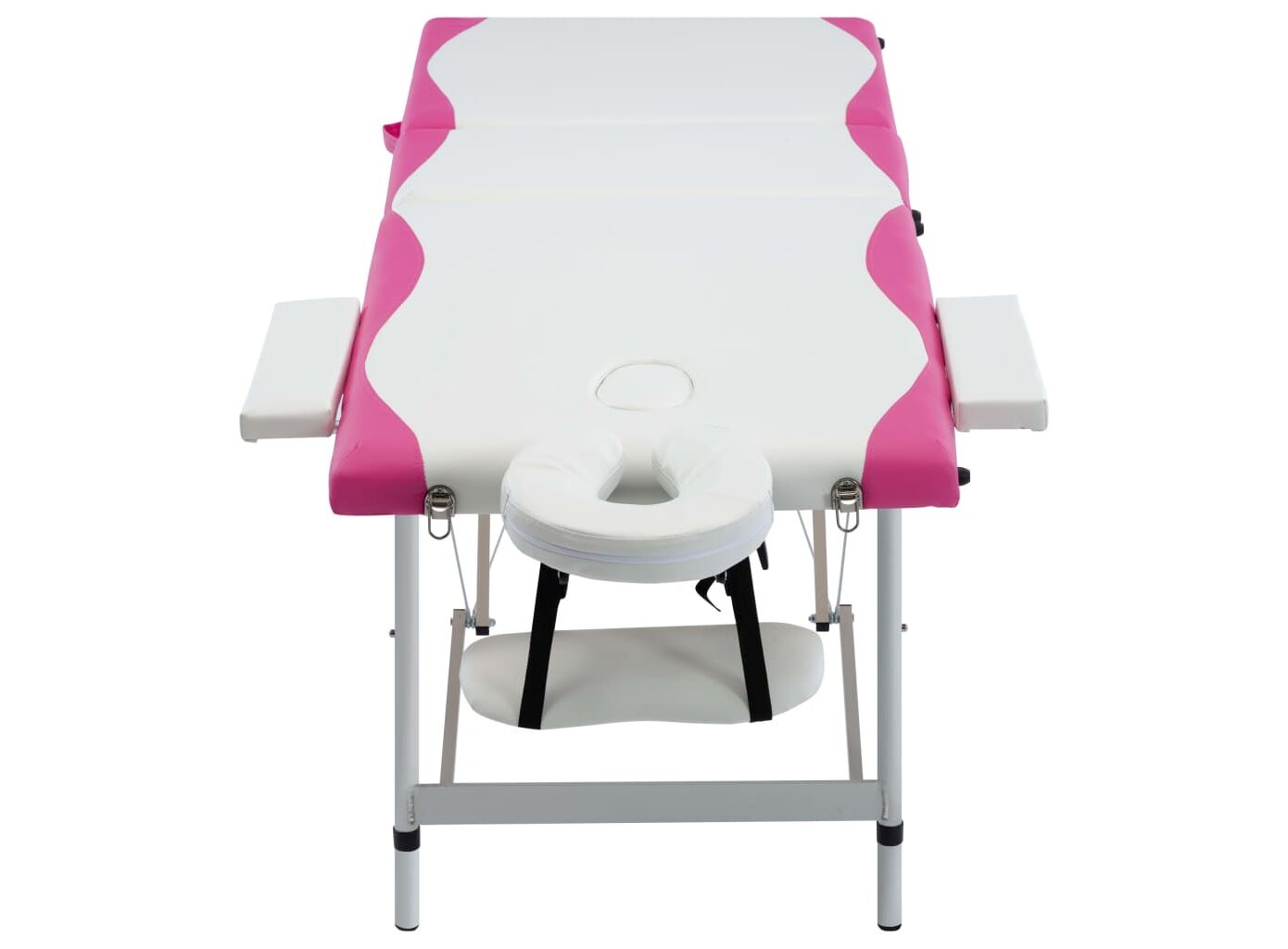 Masă pliabilă de masaj, 3 zone, alb și roz, aluminiu