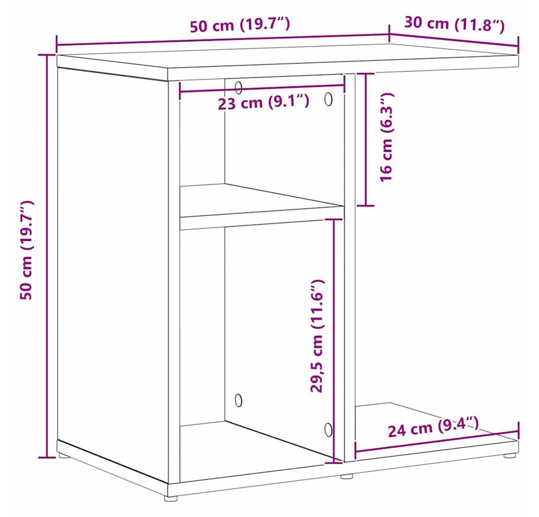 - Depozitare practică: Cu dimensiunile de 50 x 30 x 50 cm, această masă laterală oferă suficient spațiu pentru lămpi, obiecte decorative sau bunuri personale.