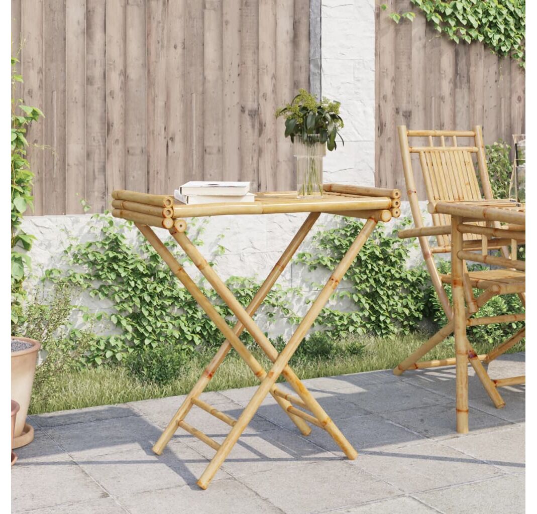 Această masă modernă cu tavă pliabilă, din bambus, proiectată cu linii bine definite și simple, este o alegere excelentă pentru grădina dvs., terasă și alte spații de exterior.