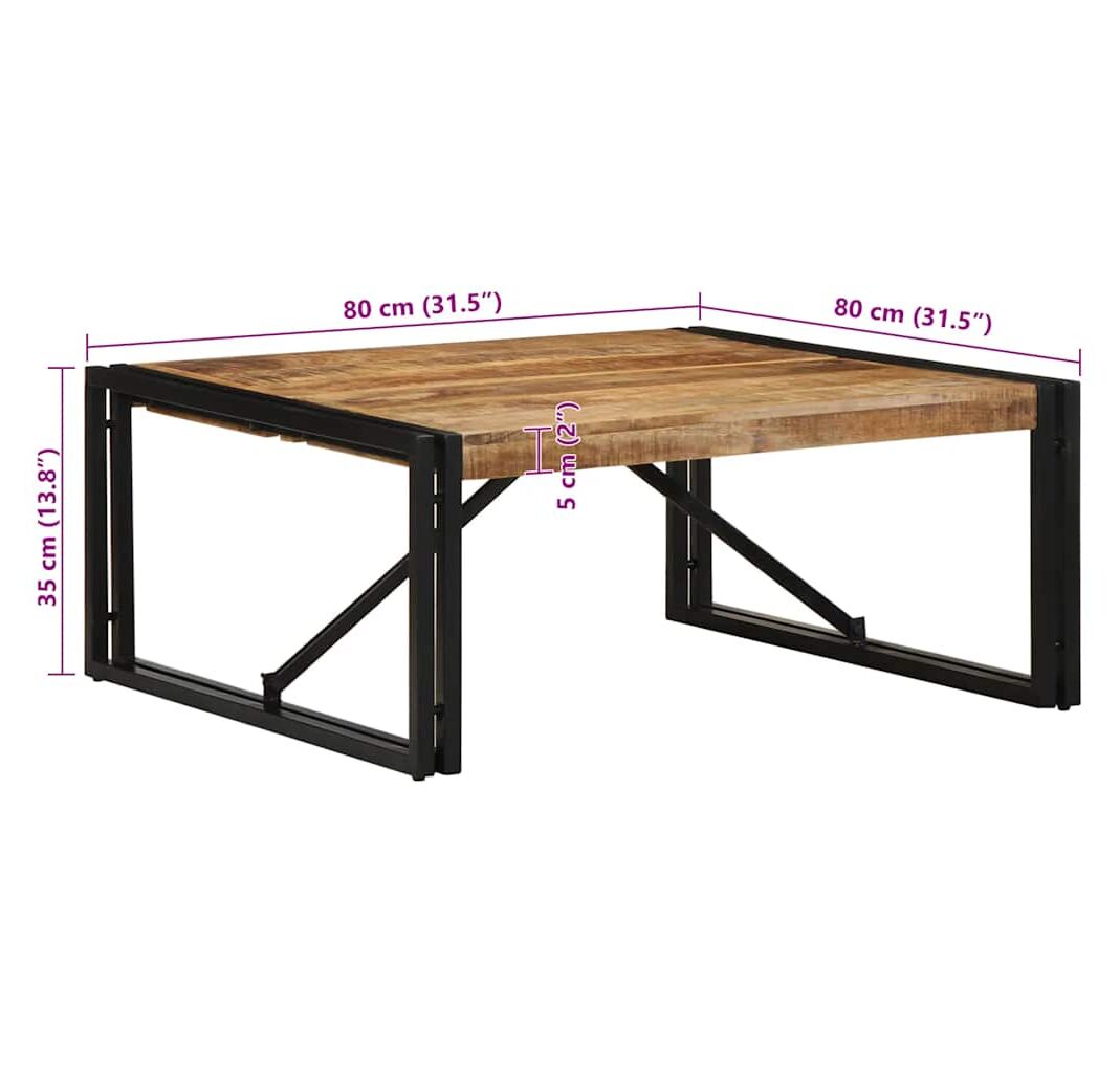 - Material: Lemn masiv brut de mango cu finisaj natural, fier vopsit electrostatic