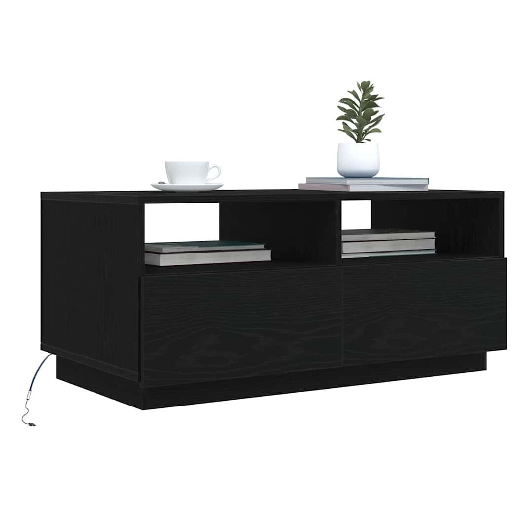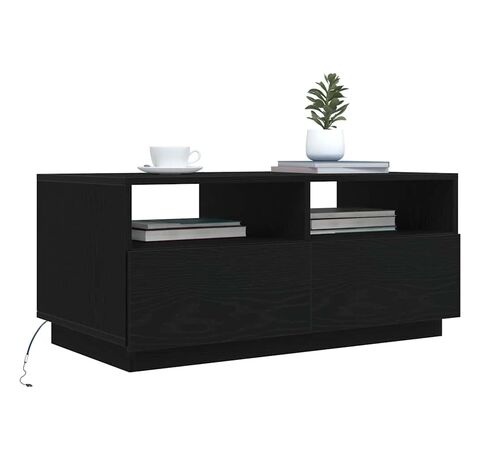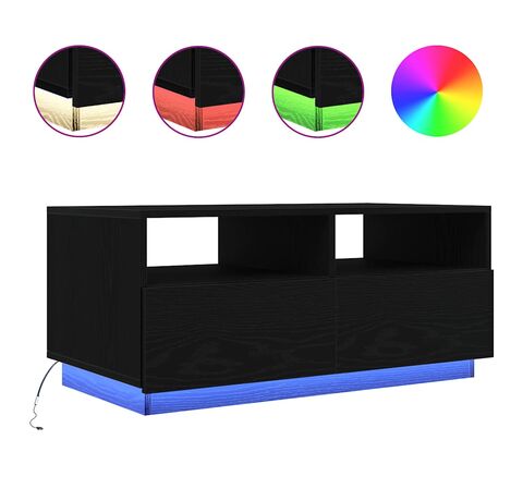 Masuta de cafea cu lumini LED Stejar negru 90x49x40 cm