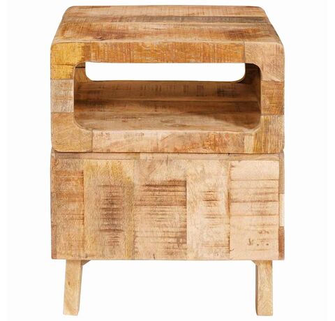 Măsuța asta de final e un mix adorabil de stil și practicitate, exact ce trebuie ca să aduci un pic de eleganță rustică în casa ta. Textura ei aspră și farmecul lucrată manual scot în evidență frumusețea naturală a oricărei camere, integrându-se perfect cu rafturile ei. Super pentru interior, economisește spațiu în timp ce își face treaba și se potrivește bine în livinguri și dormitoare. Forma ei rectangulară se încadrează perfect lângă canapele și scaune, fiind locul ideal pentru băuturi, lămpi sau alte obiecte.