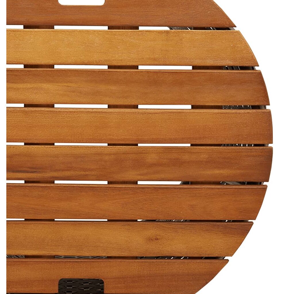 Ratan PE, oțel vopsit electrostatic, lemn masiv de acacia cu finisaj în ulei