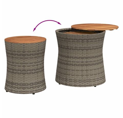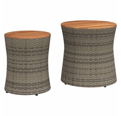 Mese laterale de grădină cu blat din lemn 2 buc. gri poliratan
