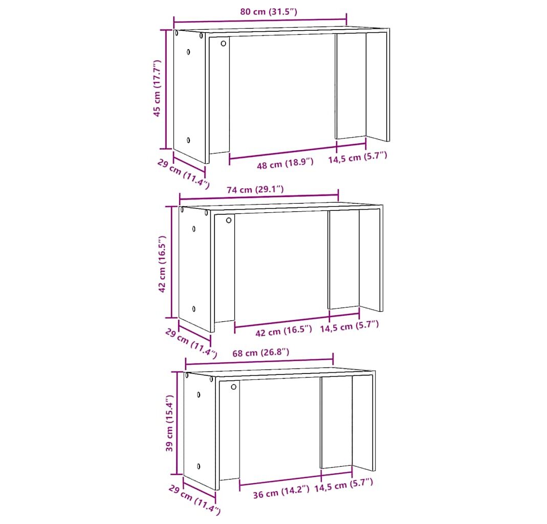 - Design de cuibarit: Mesele de cuibar versatile sunt concepute pentru a se adapta spatiului dumneavoastra de locuit. Folosiți-le individual ca mese laterale, stivuiți-le în unghiuri diferite pentru a crea o masă de capăt unică sau combinați-le frumos pentru a economisi spațiu. Ele îmbină perfect funcționalitatea cu stilul, făcându-le un plus perfect pentru amenajările interioare moderne.