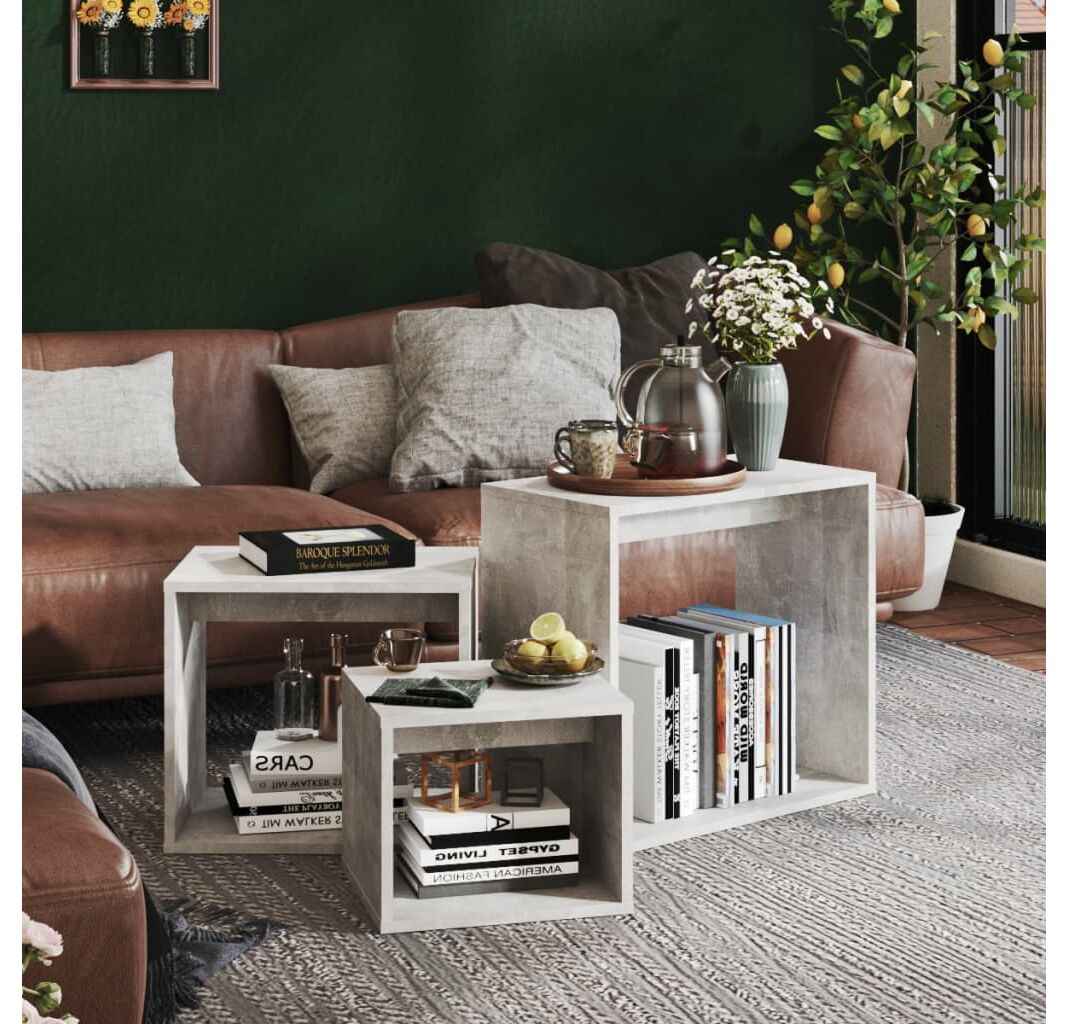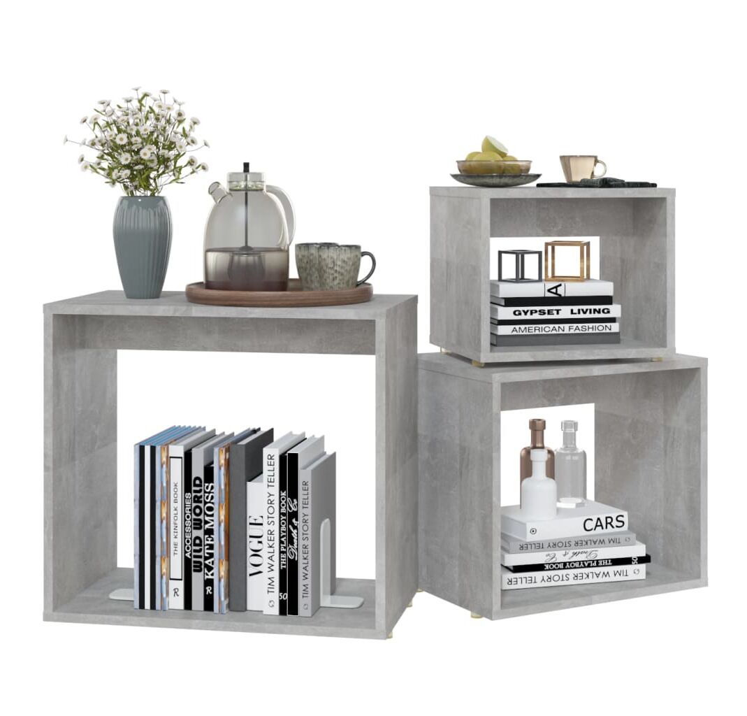 Cantitatea minima pentru "Măsuțe suprapuse, 3 buc., gri beton, PAL" este 1.