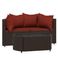 Set mobilier de grădină cu perne, 3 piese, maro, poliratan