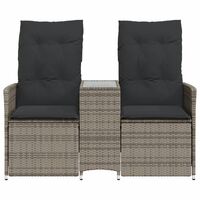 Canapea de grădină rabatabilă 2 locuri cu masă gri poliratan