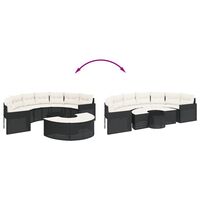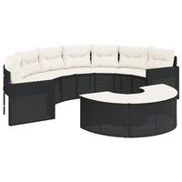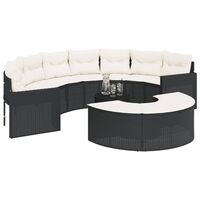 Set canapea de grădină, 3 piese, semi-rotunde, negru, poliratan