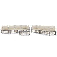 Set mobilier de grădină cu perne, 10 piese, antracit, poliratan