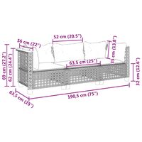 Canapea de grădină cu perne, 2 locuri, negru, poliratan
