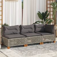 Canapea de grădină fără cotiere, cu perne, negru, poliratan