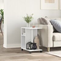 Măsuță laterală cu roți, alb, 50x30x55 cm, lemn prelucrat