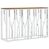 Masă consolă, argintiu, oțel inoxidabil și traverse lemn masiv
