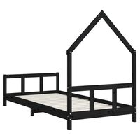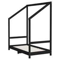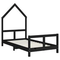 Cadru de pat pentru copii, negru, 90x190 cm, lemn masiv de pin