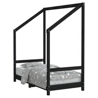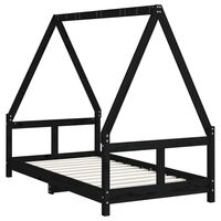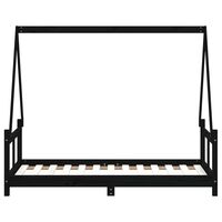 Cadru de pat pentru copii, negru, 80x200 cm, lemn masiv de pin