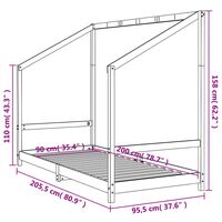 Cadru de pat pentru copii, alb, 90x200 cm, lemn masiv de pin