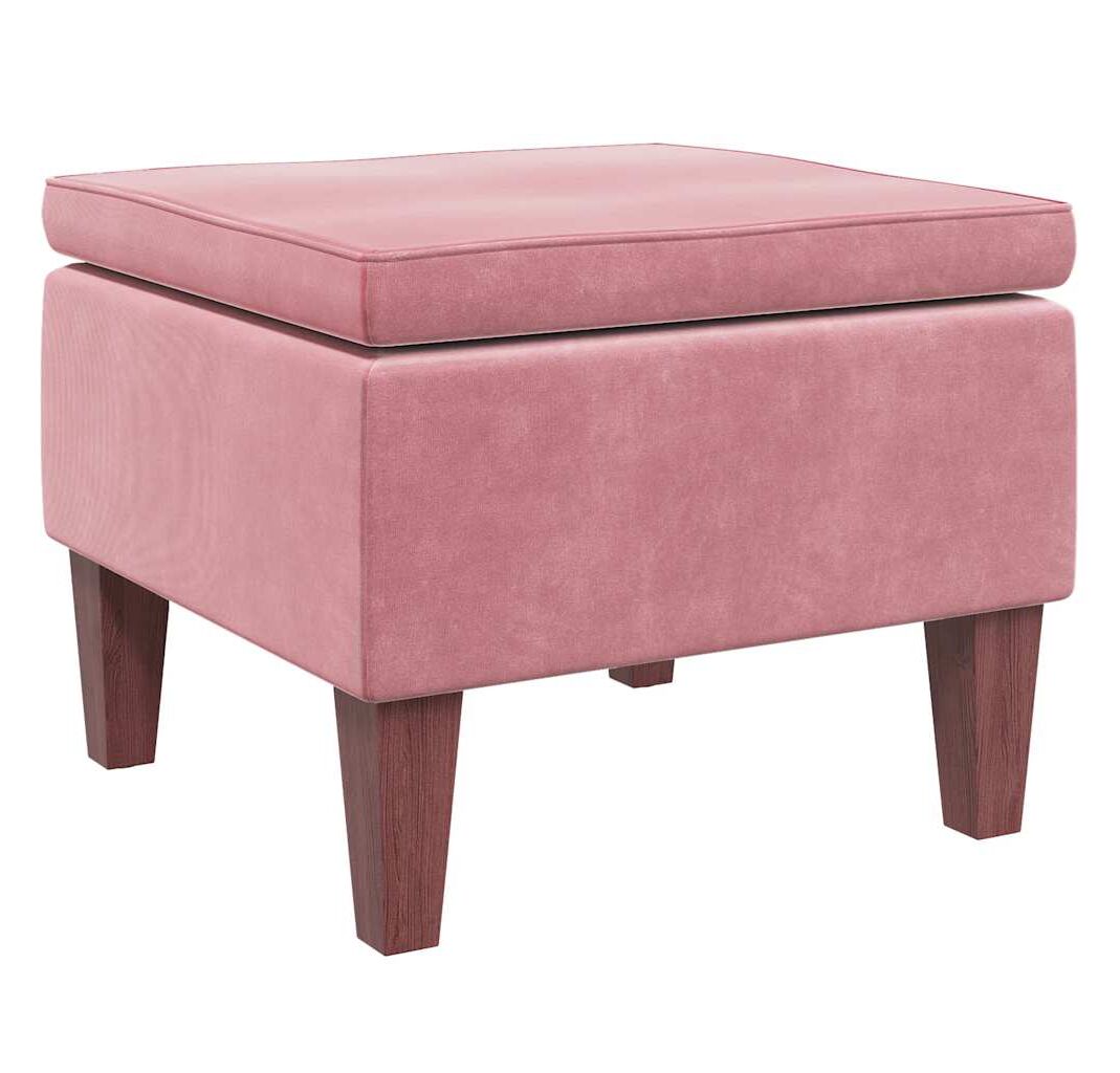 Scaun cu picioare din lemn, roz, catifea