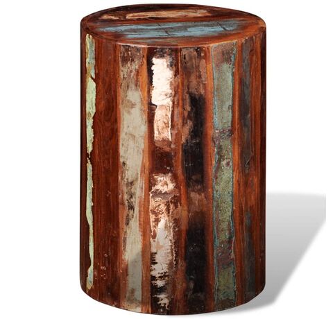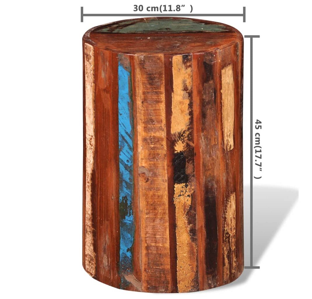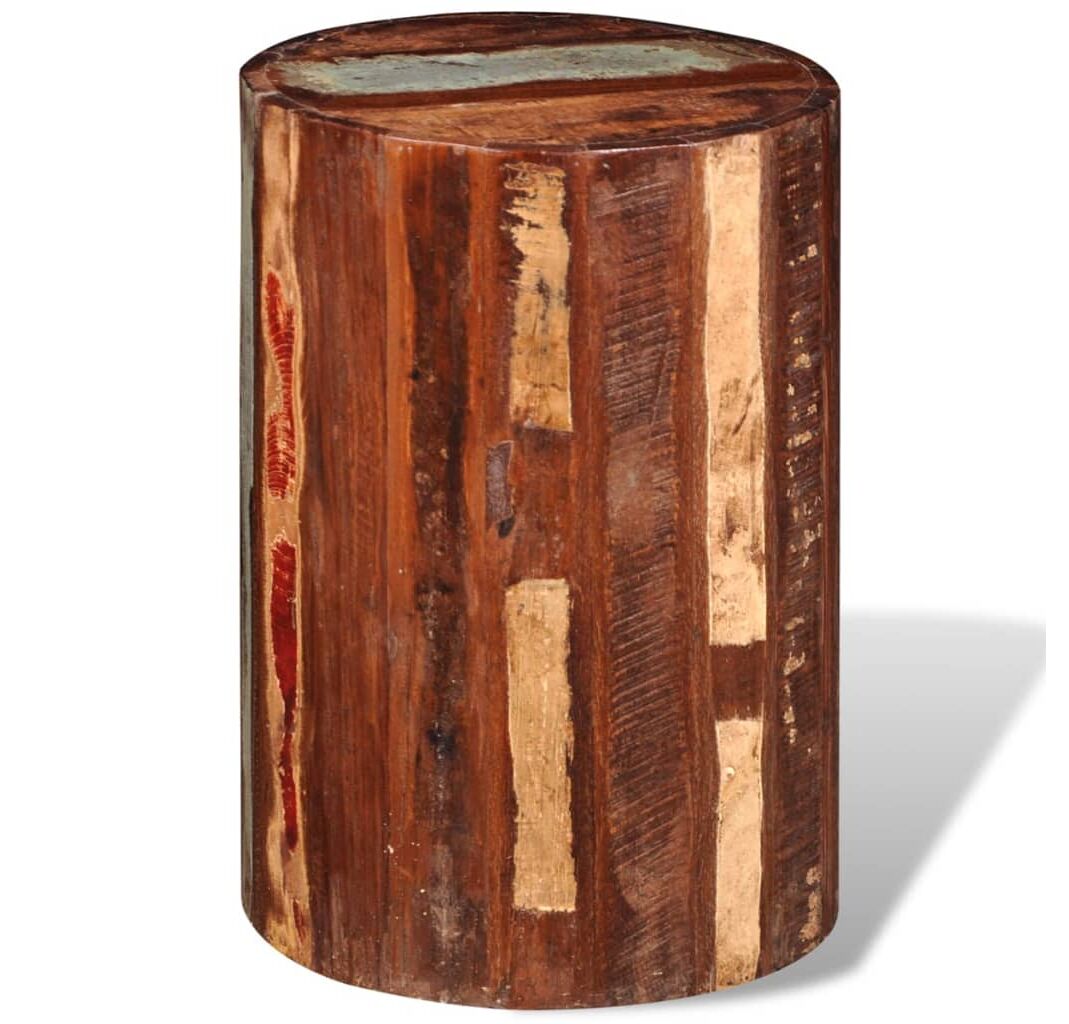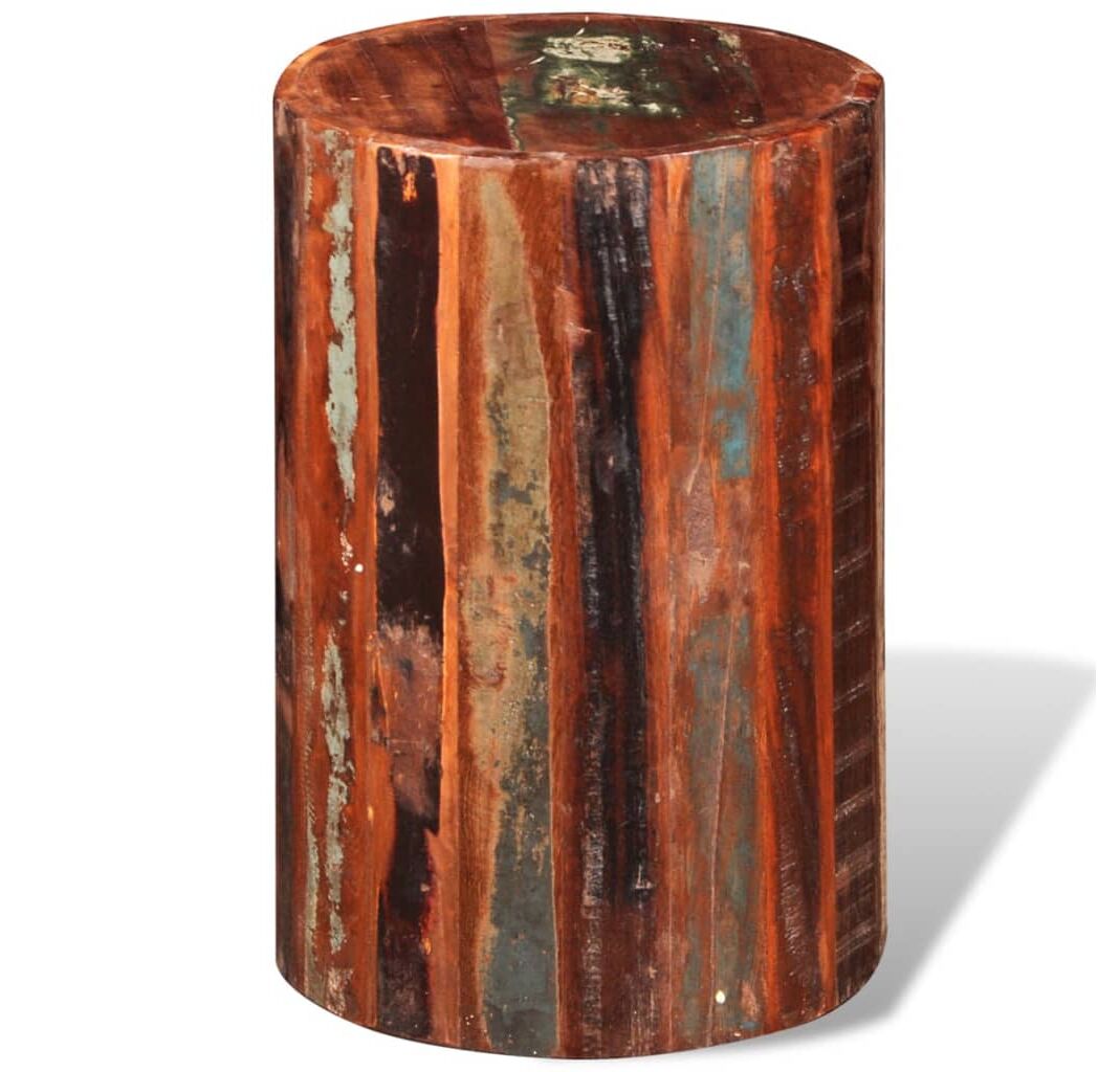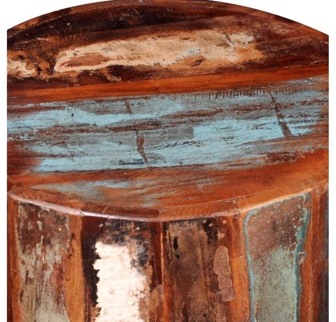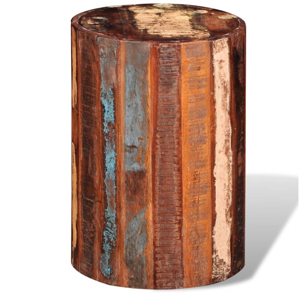 Acest taburet cilindric vintage este fabricat din lemn masiv reciclat, astfel încât fiecare piesă de mobilier este unică și ușor diferită de cealaltă. Mobilierul fabricat din lemn reciclat prezintă caracteristicile diferitelor tipuri de lemn folosite, precum lemnul de tec, acacia, mango, saal etc. Lemnul reciclat este rezistent, stabil, durabil și atrăgător. Găurile de la cuie sau fibrele bine definite își poartă cu ele trecutul și invită generația următoare să intre în povestea lor. Cu această piesă de mobilier în casa dvs., vă veți declara atitudinea față de conservarea resurselor, protecția mediului și dezvoltarea durabilă.