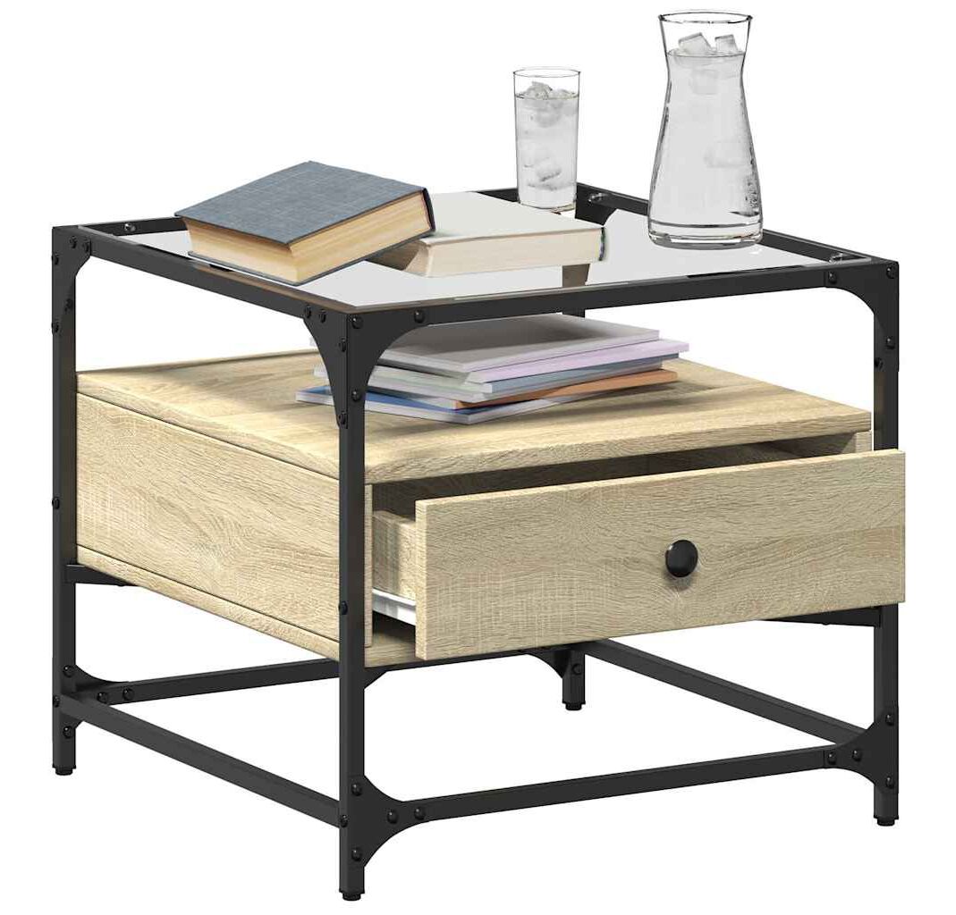 - Blat din sticlă: Blatul mesei laterale oferă o suprafață vizibilă și amplă pentru a plasa gustări, băuturi, vaze, boluri cu fructe sau alte obiecte decorative.