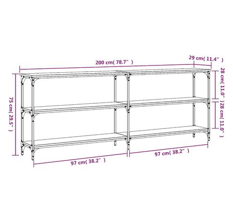 200 x 29 x 75 cm (L x l x î)