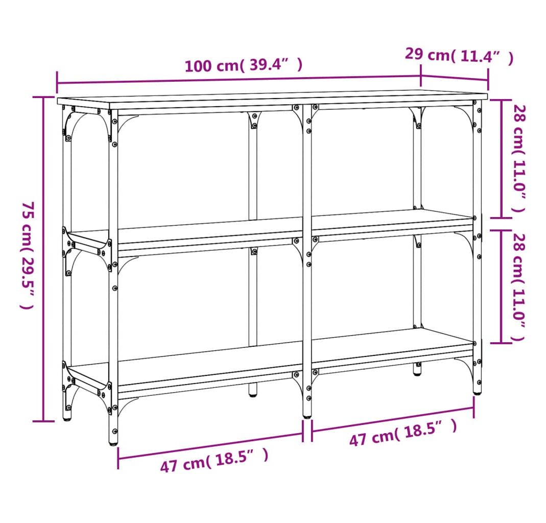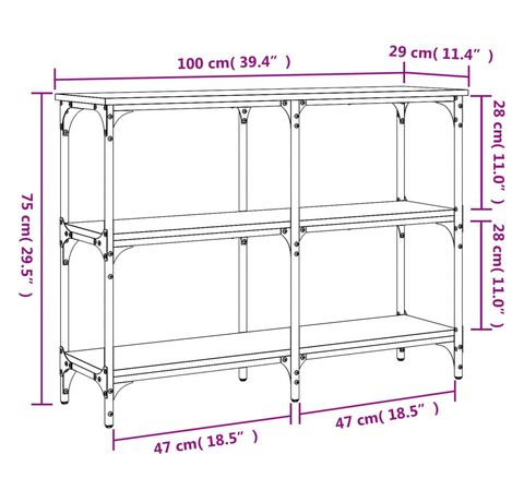 Cantitatea minima pentru "Măsuță consolă, gri sonoma, 100x29x75 cm, lemn prelucrat" este 1.
