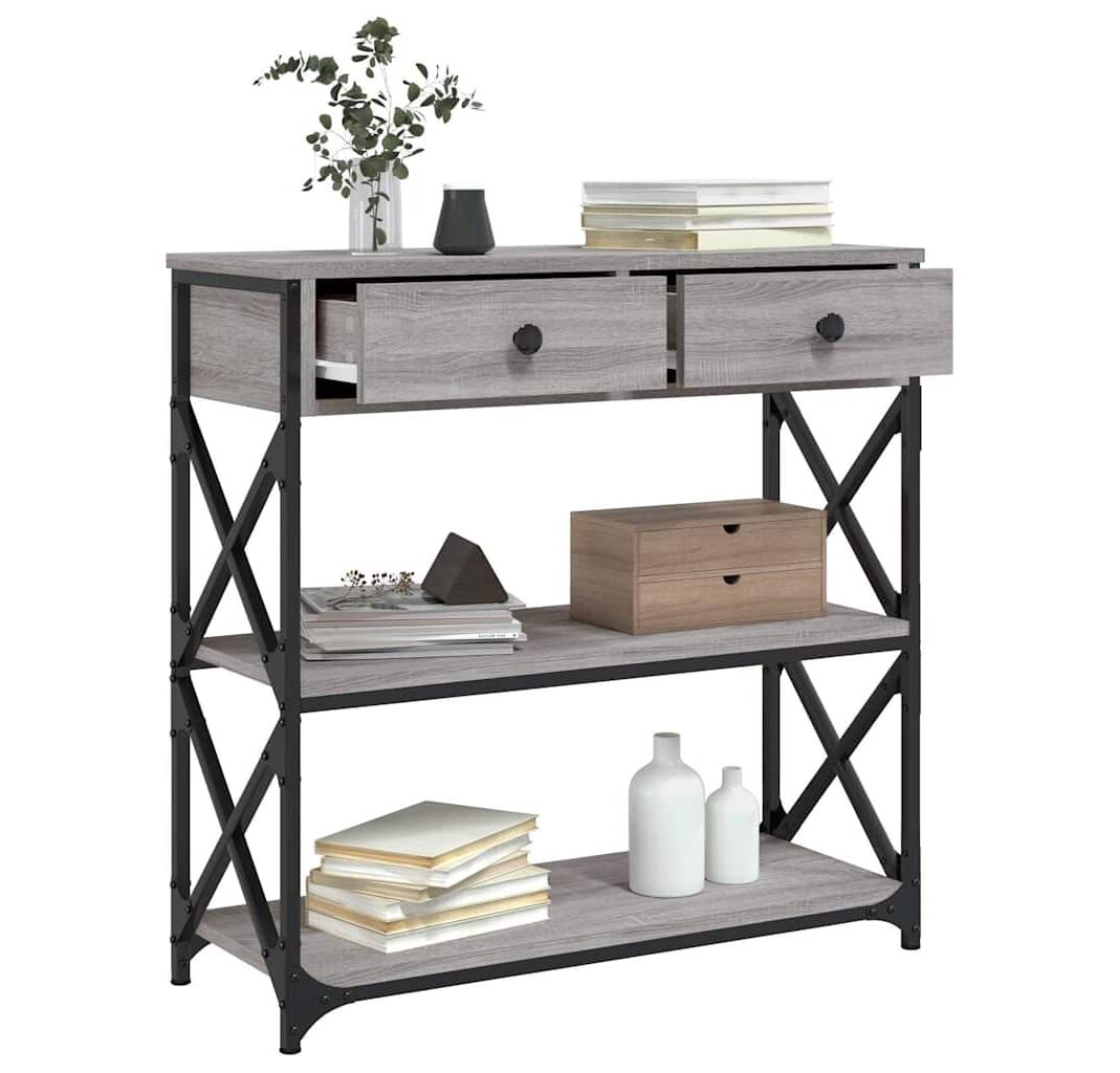 Cantitatea minima pentru "Măsuță consolă, gri sonoma, 75x28x75 cm, lemn prelucrat" este 1.