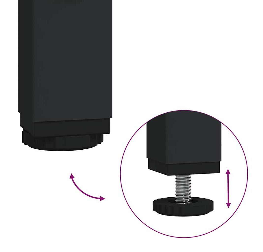 • Picioare reglabile: Cele patru picioare reglabile, cu suporturi din plastic, mențin această masă de hol echilibrată pe un teren neuniform și îi măresc stabilitatea.