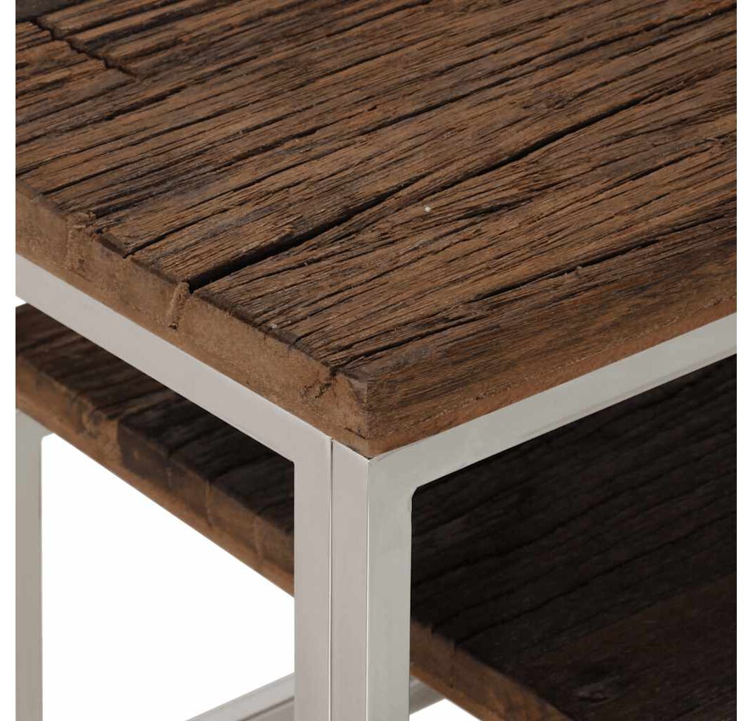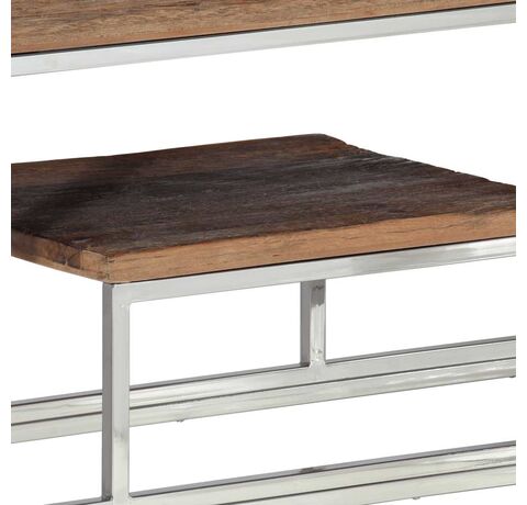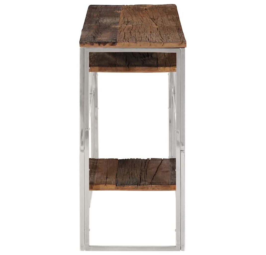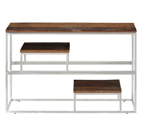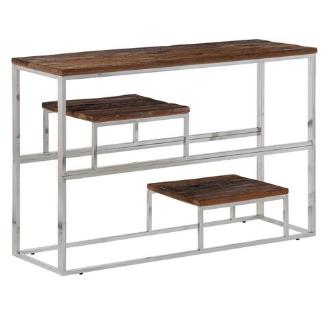 Măsuță consolă, oțel inoxidabil argintiu și traverse lemn masiv