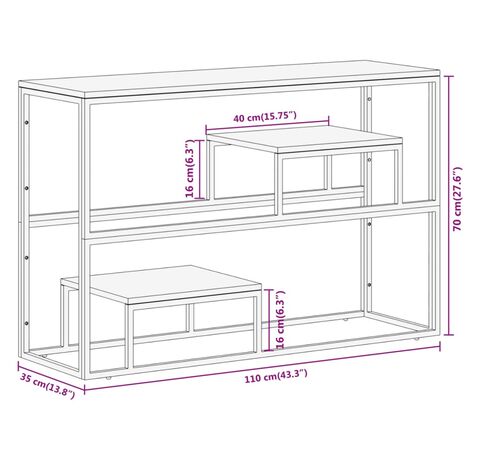 • Blat din lemn masiv de acacia: Blatul mesei de canapea oferă o suprafață sigură și amplă pentru a plasa vaze, plante în ghivece sau alte obiecte decorative.