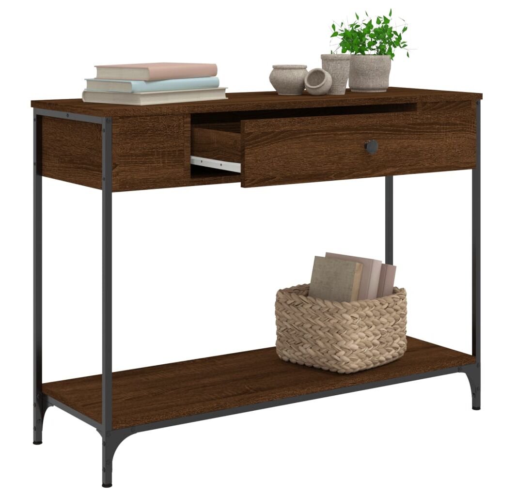 Măsuță consolă, stejar maro, 100x34,5x75 cm, lemn prelucrat