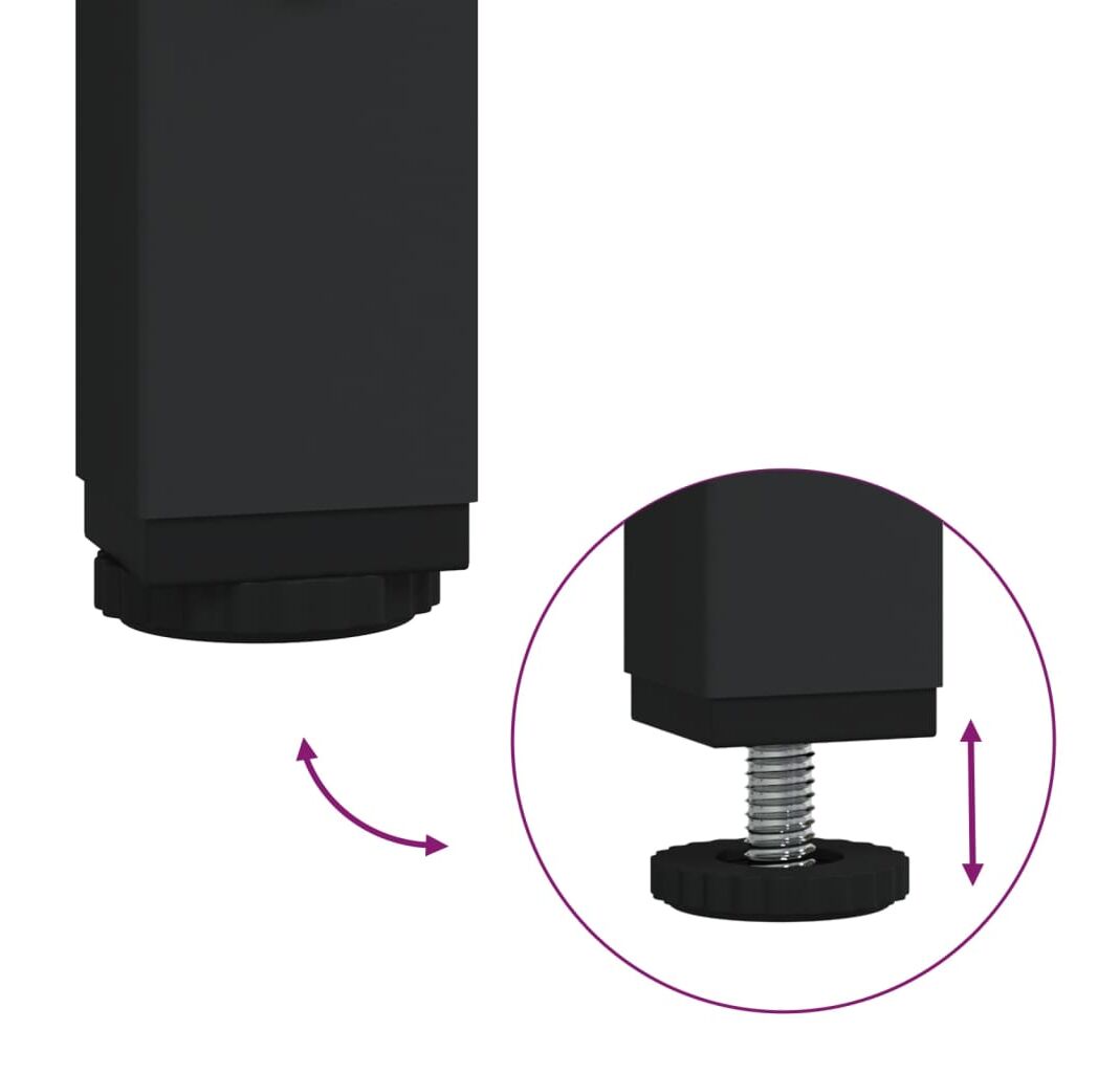 - Picioare reglabile: Cele patru picioare reglabile, cu suporturi din plastic, mențin această masă de hol echilibrată pe un teren neuniform și îi măresc stabilitatea.