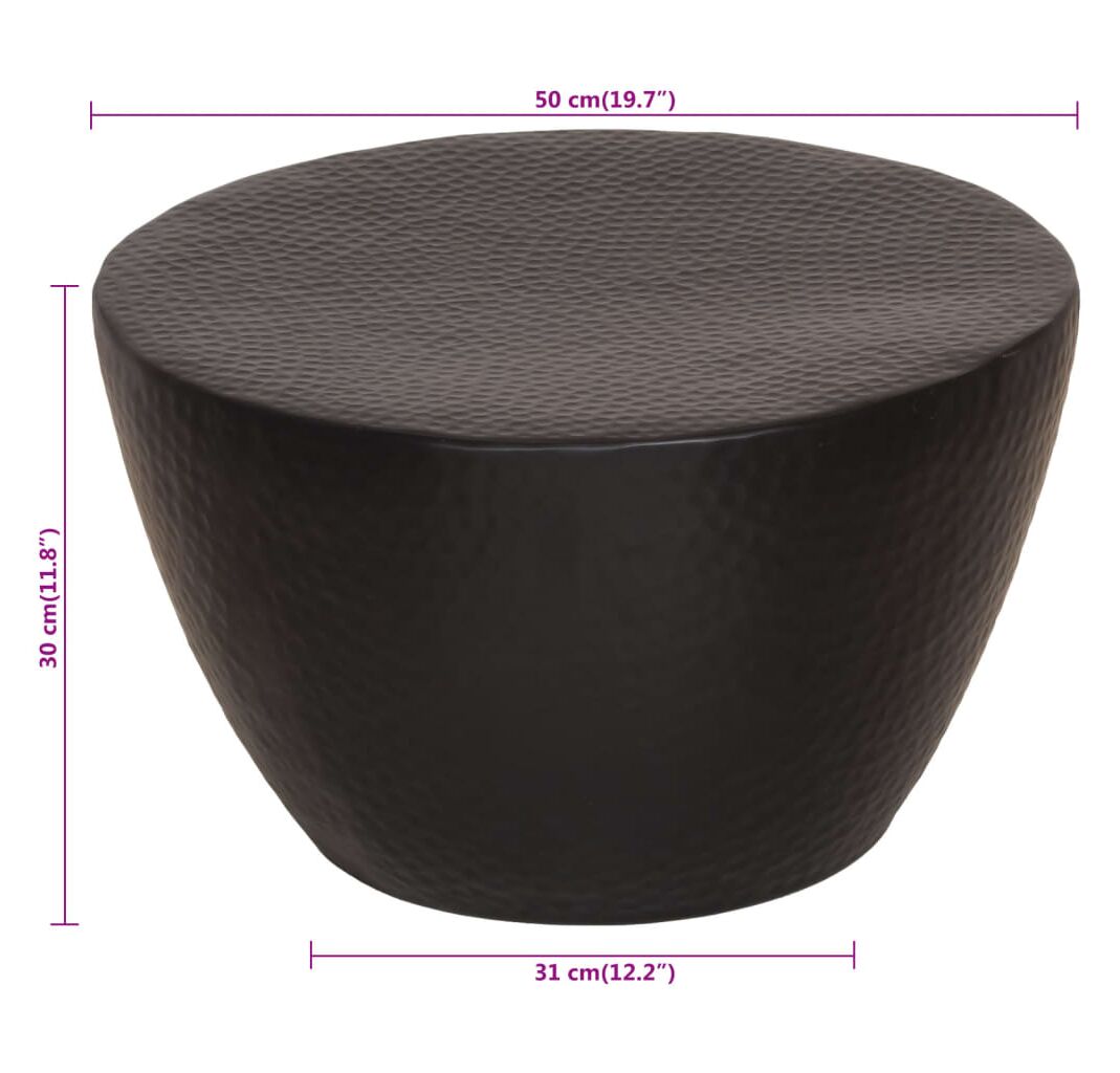 Fabricată din aluminiu bătut la ciocan, această măsuță de cafea este durabilă și de înaltă calitate. Măsuța noastră de cafea are un blat solid, pe care puteți așeza mâncare și băuturi, sau pe care puteți expune obiecte decorative, precum rame foto sau ghivece cu plante. Aspectul atractiv bătut la ciocan adaugă, de asemenea, textură tactilă mesei.