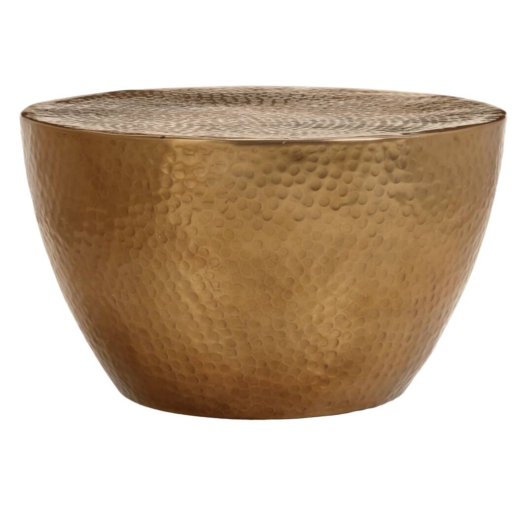 Fabricată din aluminiu bătut la ciocan, această măsuță de cafea este durabilă și de înaltă calitate. Măsuța noastră de cafea are un blat solid, pe care puteți așeza mâncare și băuturi, sau pe care puteți expune obiecte decorative, precum rame foto sau ghivece cu plante. Aspectul atractiv bătut la ciocan adaugă, de asemenea, textură tactilă mesei.