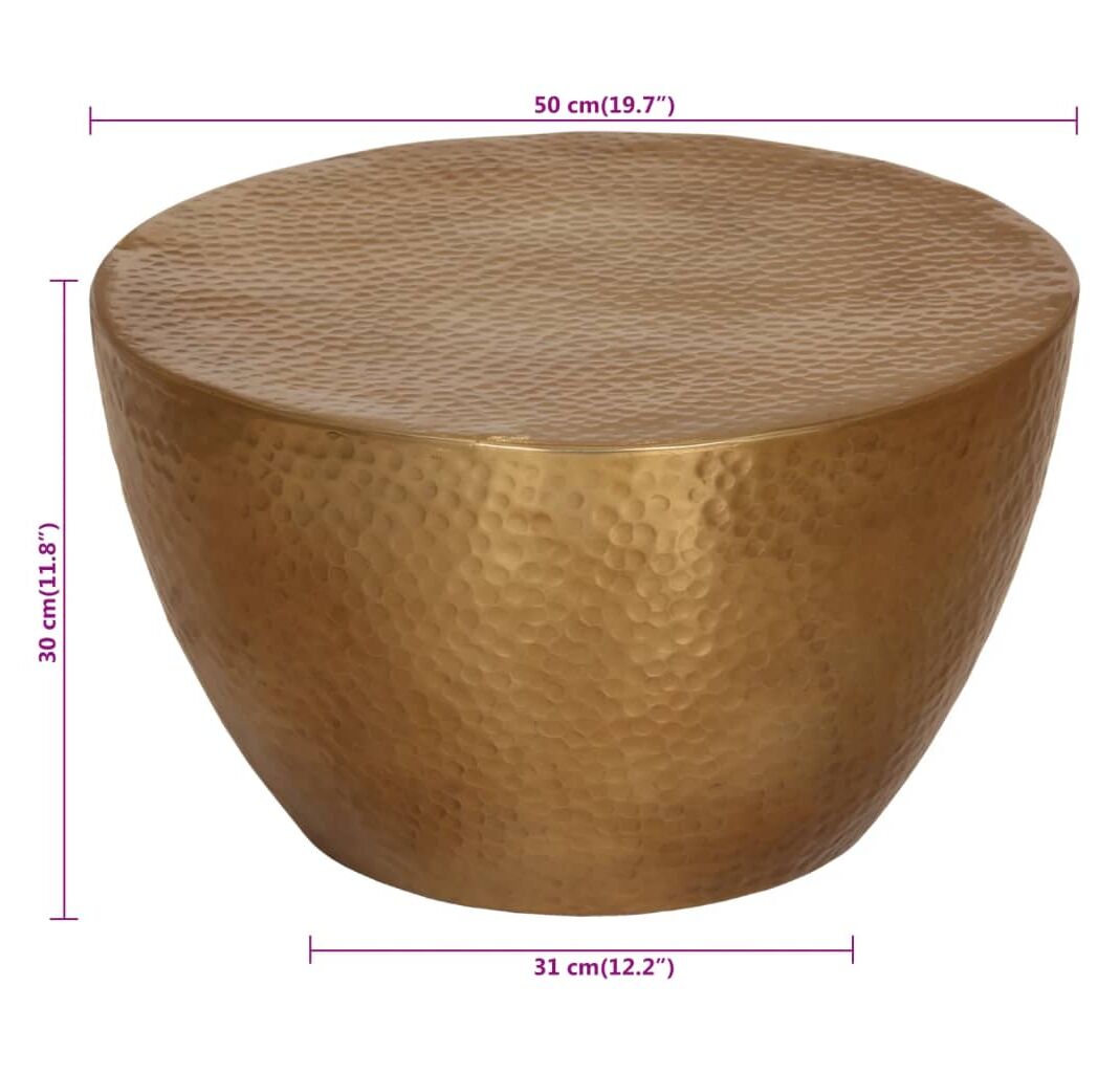 Măsuță de cafea, alamă, Ø 50x30 cm, aluminiu bătut la ciocan