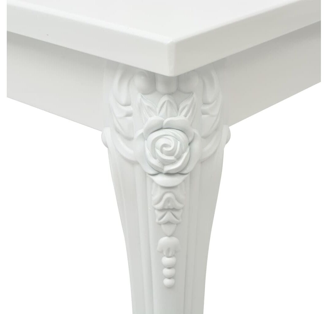 Această măsuță a fost fabricată din fibre cu densitate medie (MDF). Are patru picioare din plastic stabile și durabile, înfrumusețate cu un model clasic ornat asemănător sculpturii în lemn.
