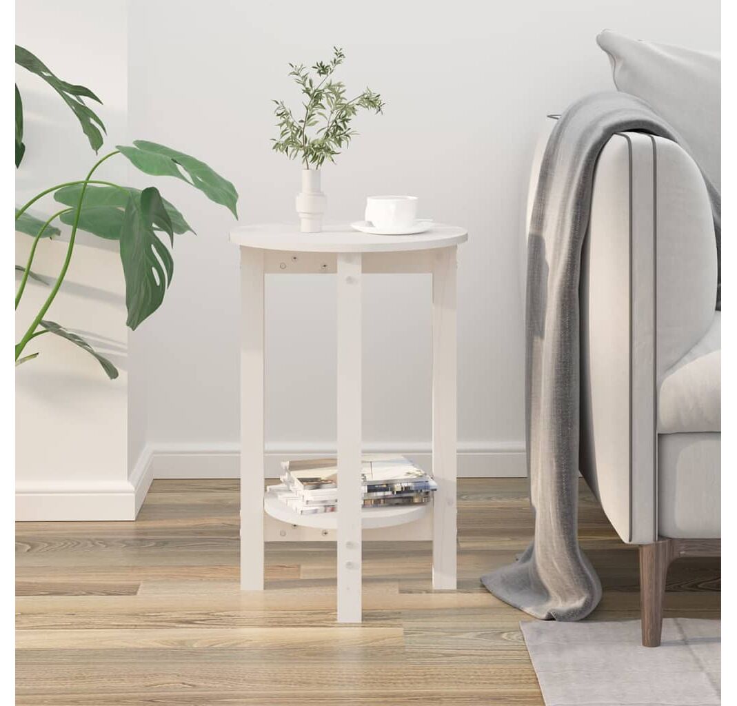 Măsuță de cafea, alb, Ø 40x60 cm, lemn masiv de pin