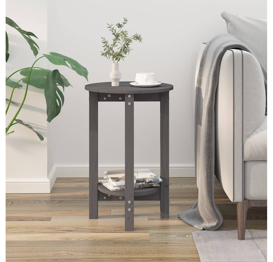 Măsuță de cafea, gri, Ø 40x60 cm, lemn masiv de pin