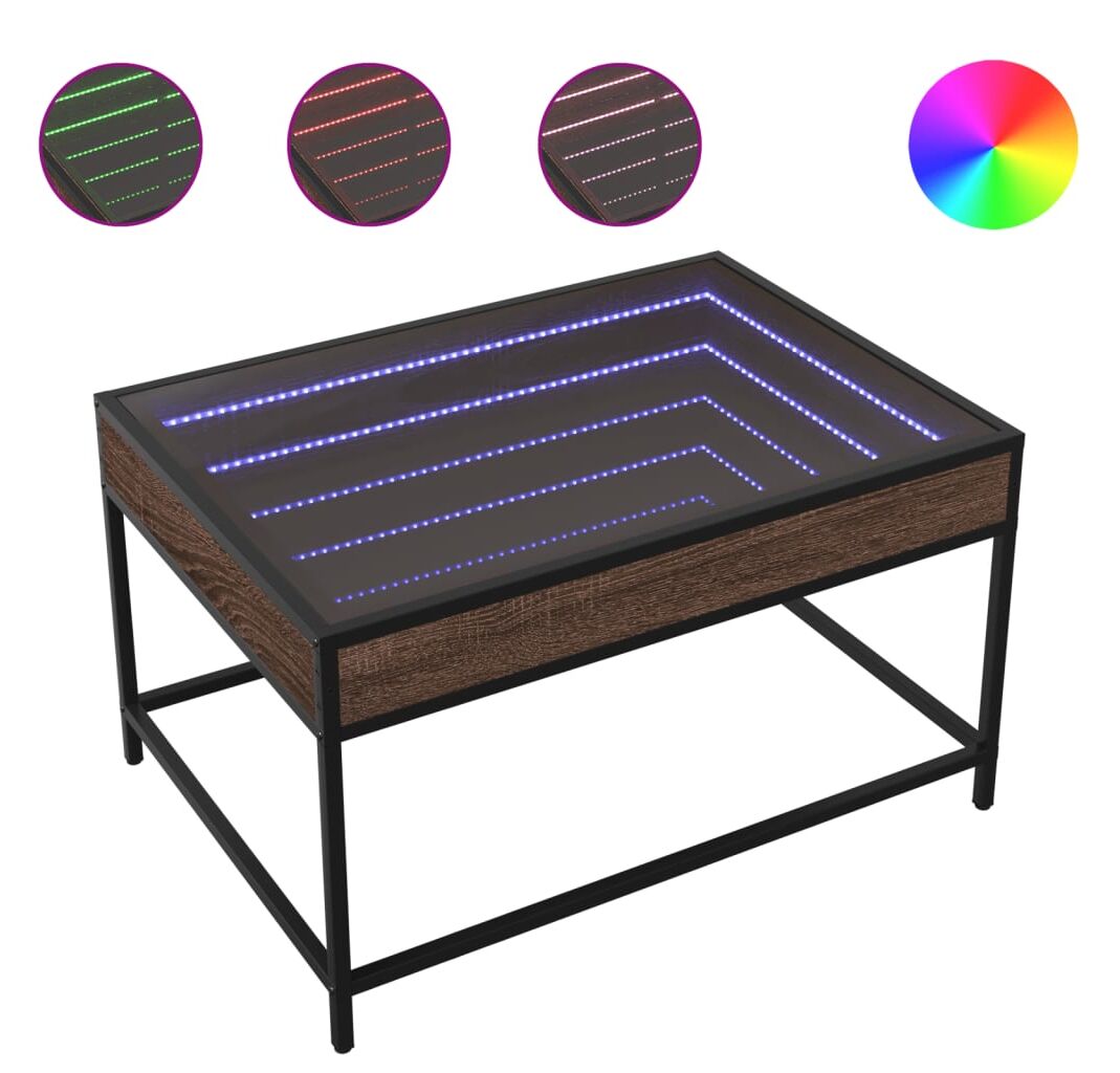 Măsuță de cafea cu LED infinity, stejar maro, 70x50x41 cm