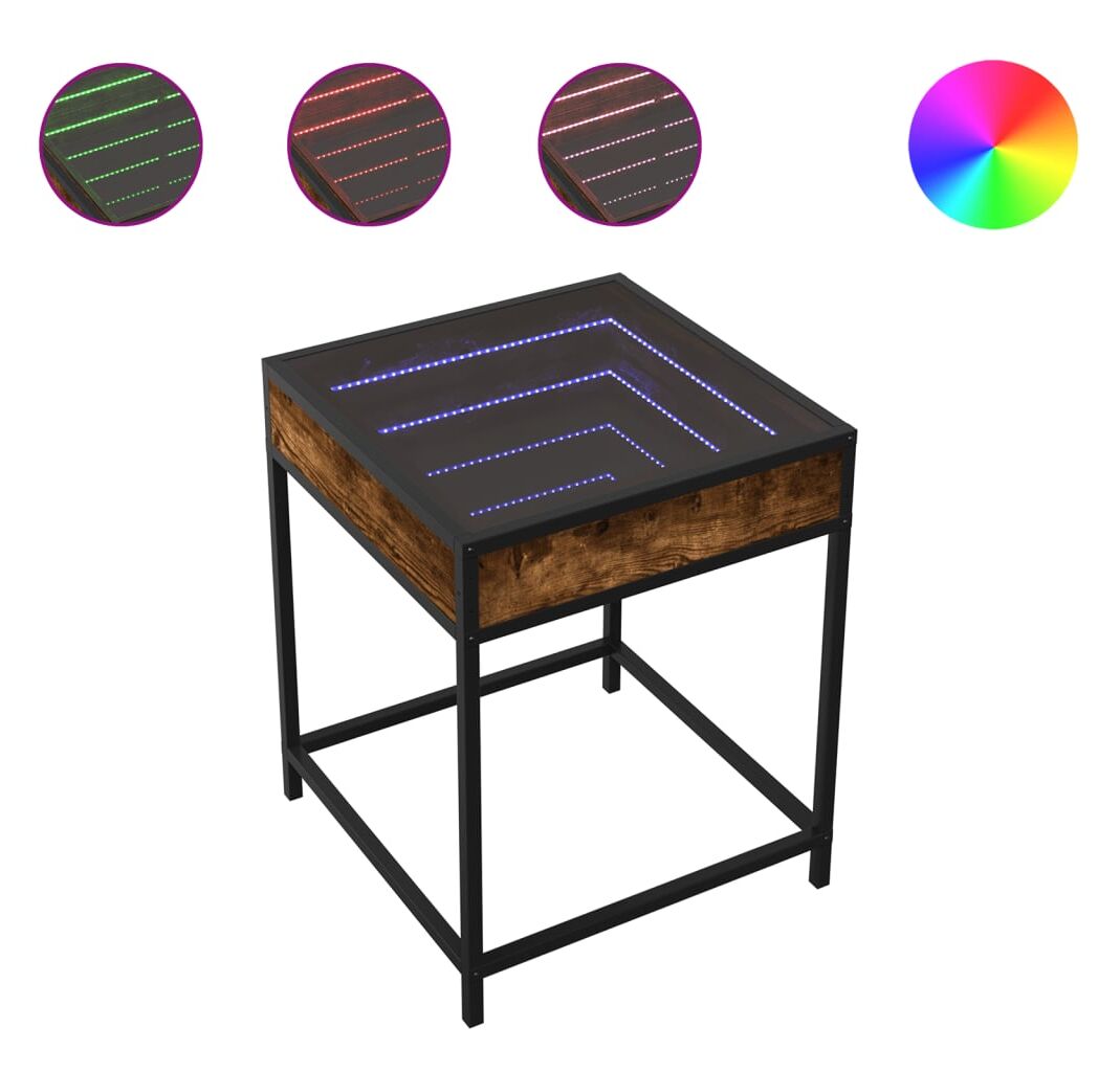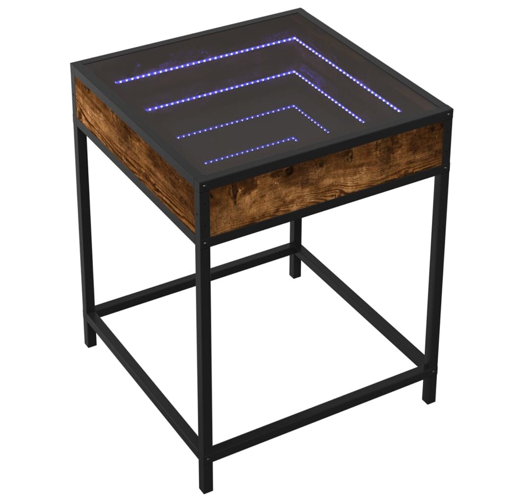 Măsuța de cafea unică, cu oglindă cu LED infinity, este potrivită pentru diferite locuri.