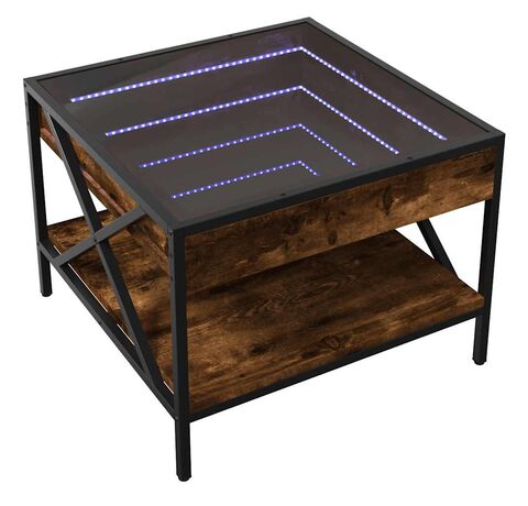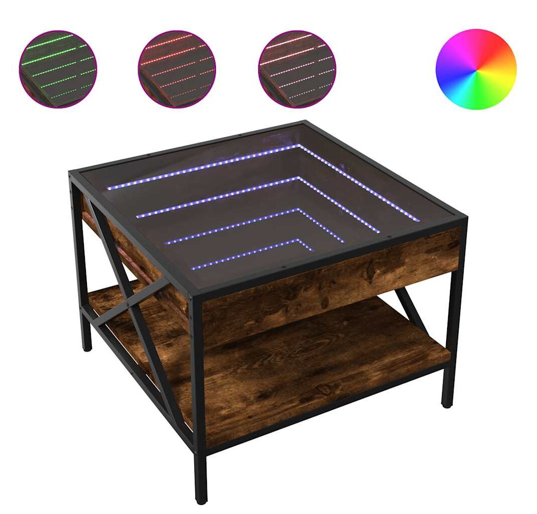 Măsuța de cafea unică, cu oglindă cu LED infinity, este potrivită pentru diferite locuri.