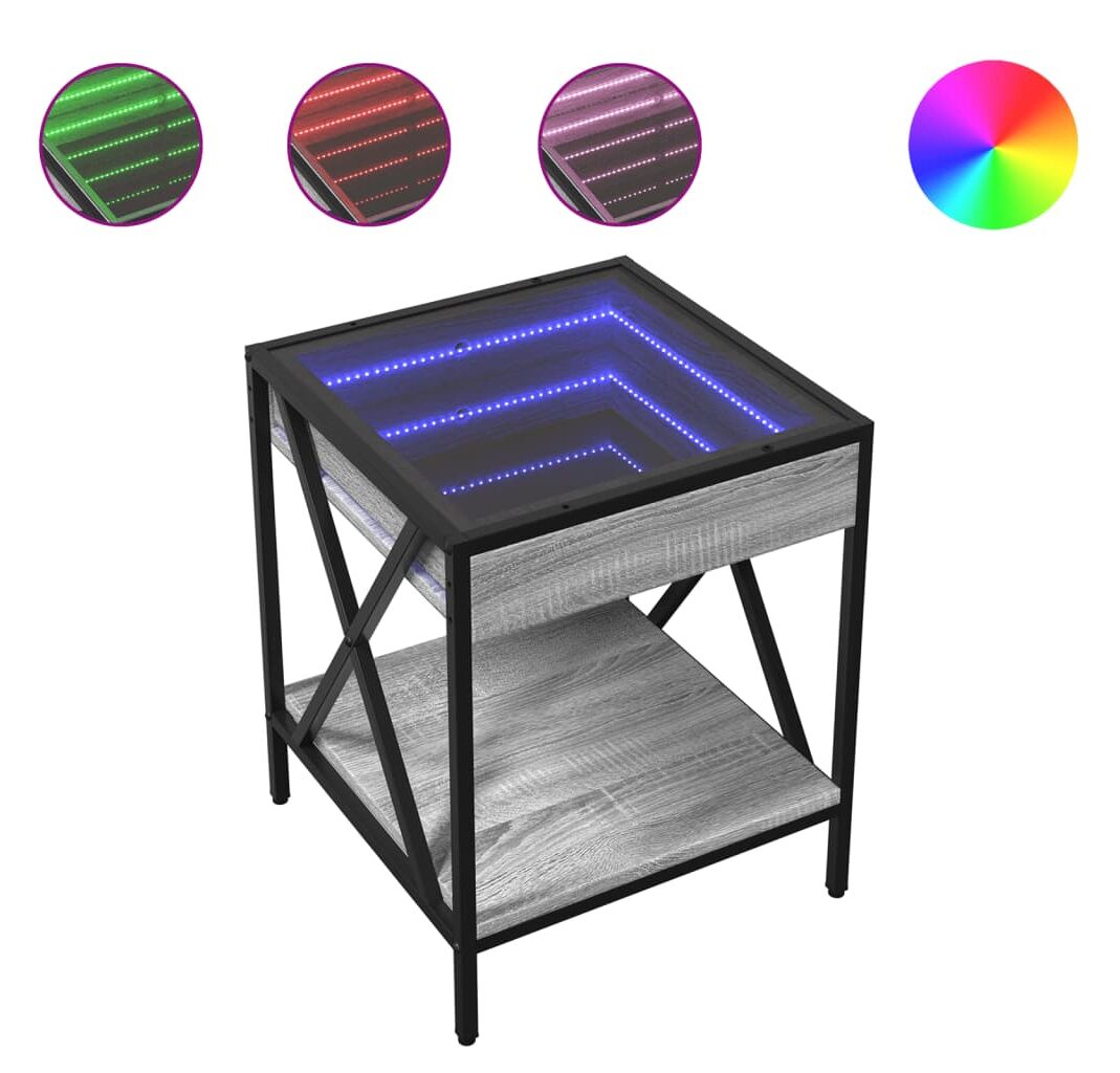 Măsuța de cafea unică, cu oglindă cu LED infinity, este potrivită pentru diferite locuri.