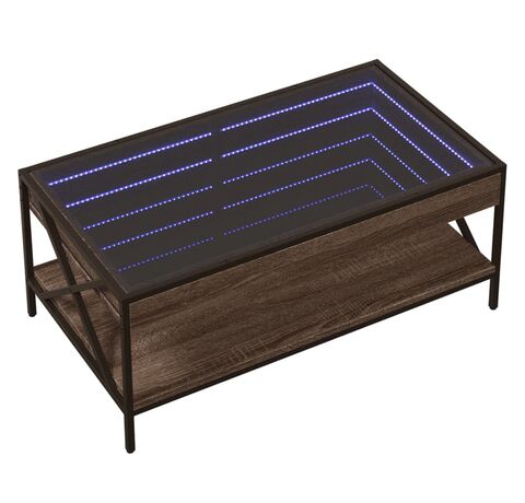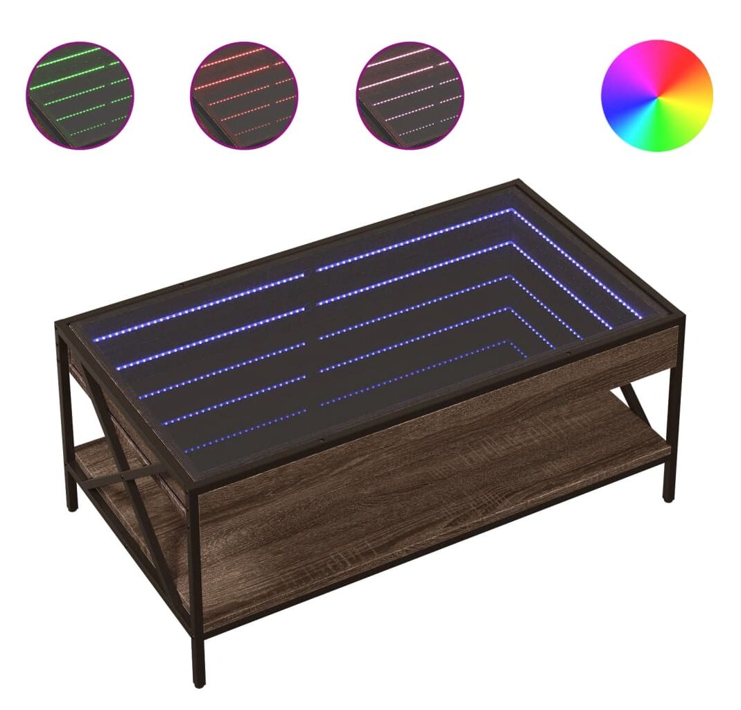 Măsuța de cafea unică, cu oglindă cu LED infinity, este potrivită pentru diferite locuri.