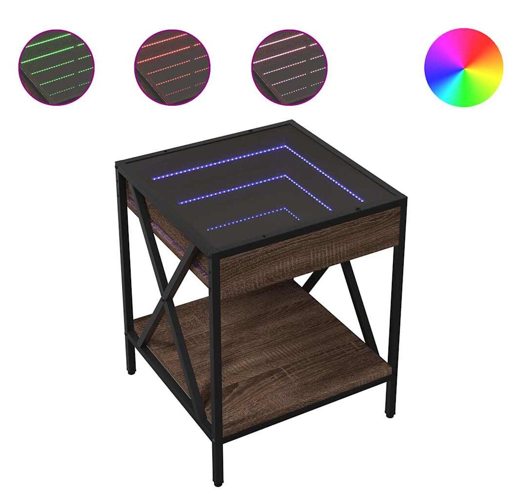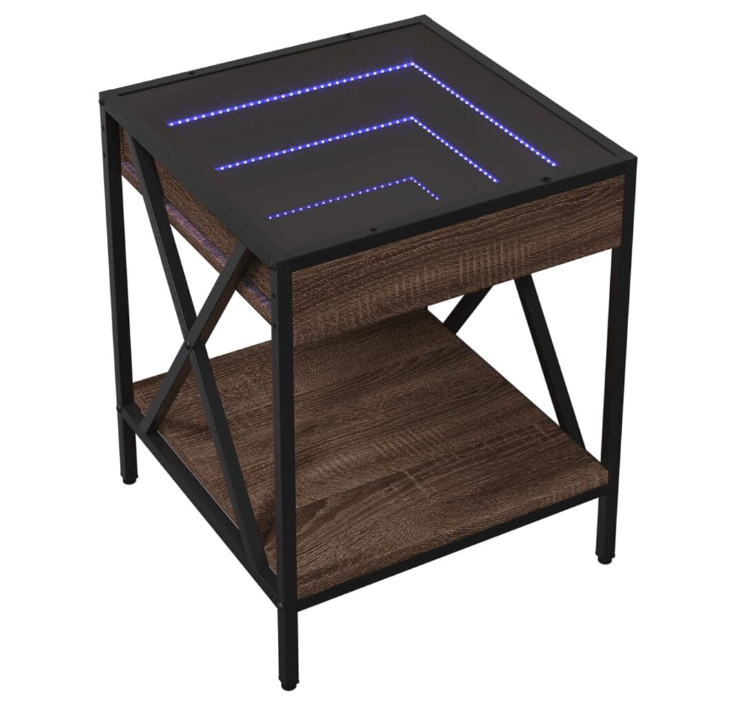Măsuță de cafea cu LED infinity, stejar maro, 40x40x49 cm
